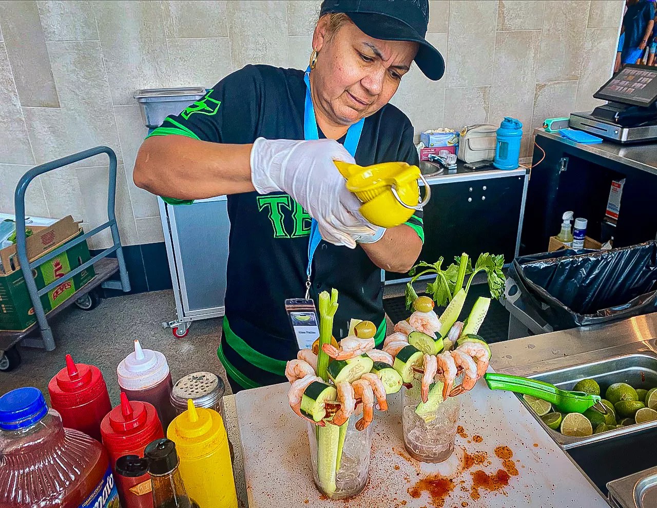 Don’t try to take this to your seat. Find a table. Eat those shrimp and sip the drink down a bit; otherwise, your new Scherzer jersey will have red smudges all over it. The shrimp and veggies steeped in the citrus, beer and spices is about as good of a meal as you’ll get here. And after working it down a bit, this large mix of beer, Clamato and spices will get you through a couple of innings (thanks to the pitching clock).