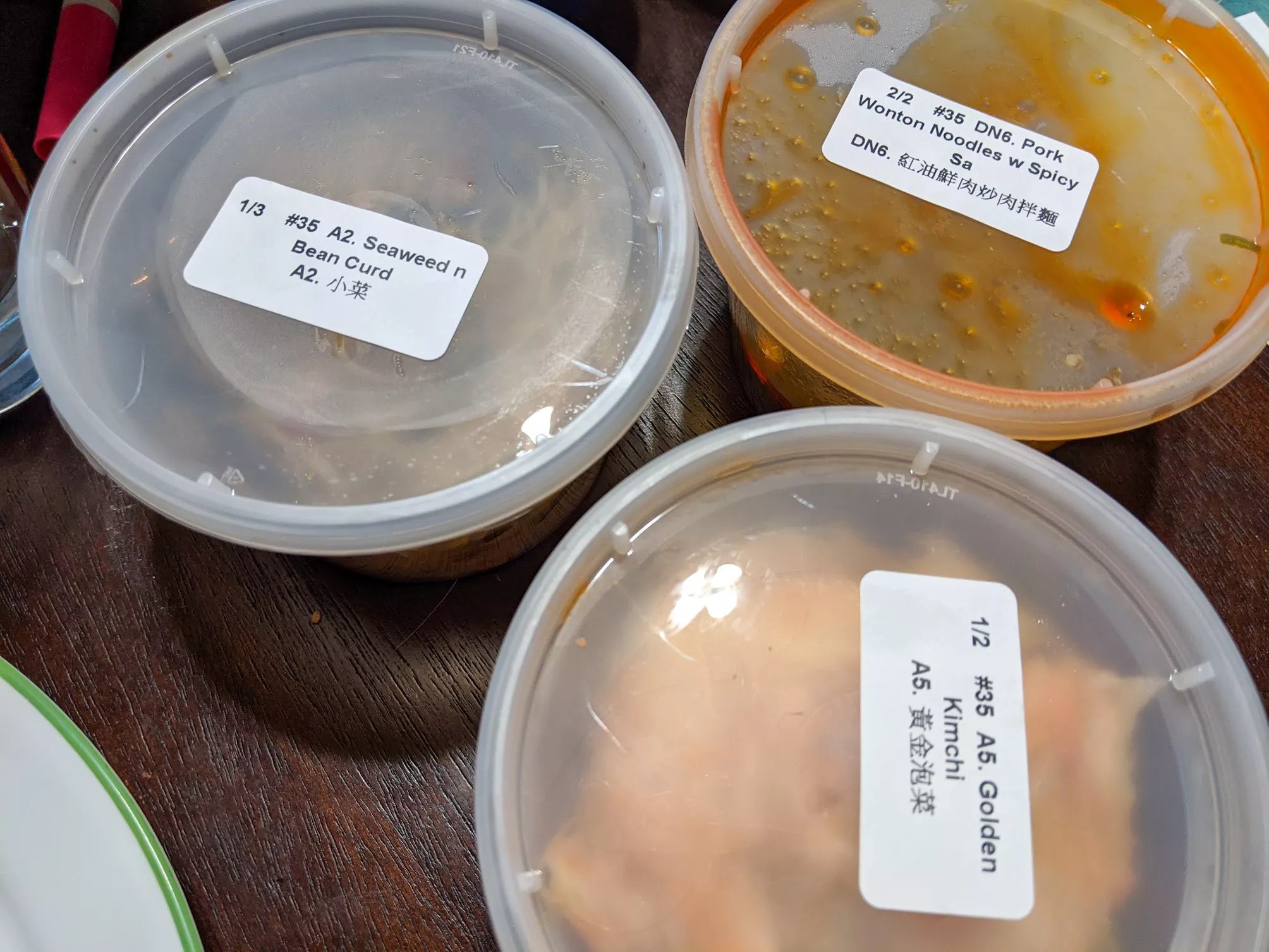 Hung emerges from the dining room – customers aren’t allowed inside – and places a tall bag of takeout containers on the table in front of my car. We wave at each other from afar, and when Hung is back inside, I step out to pick up my food.