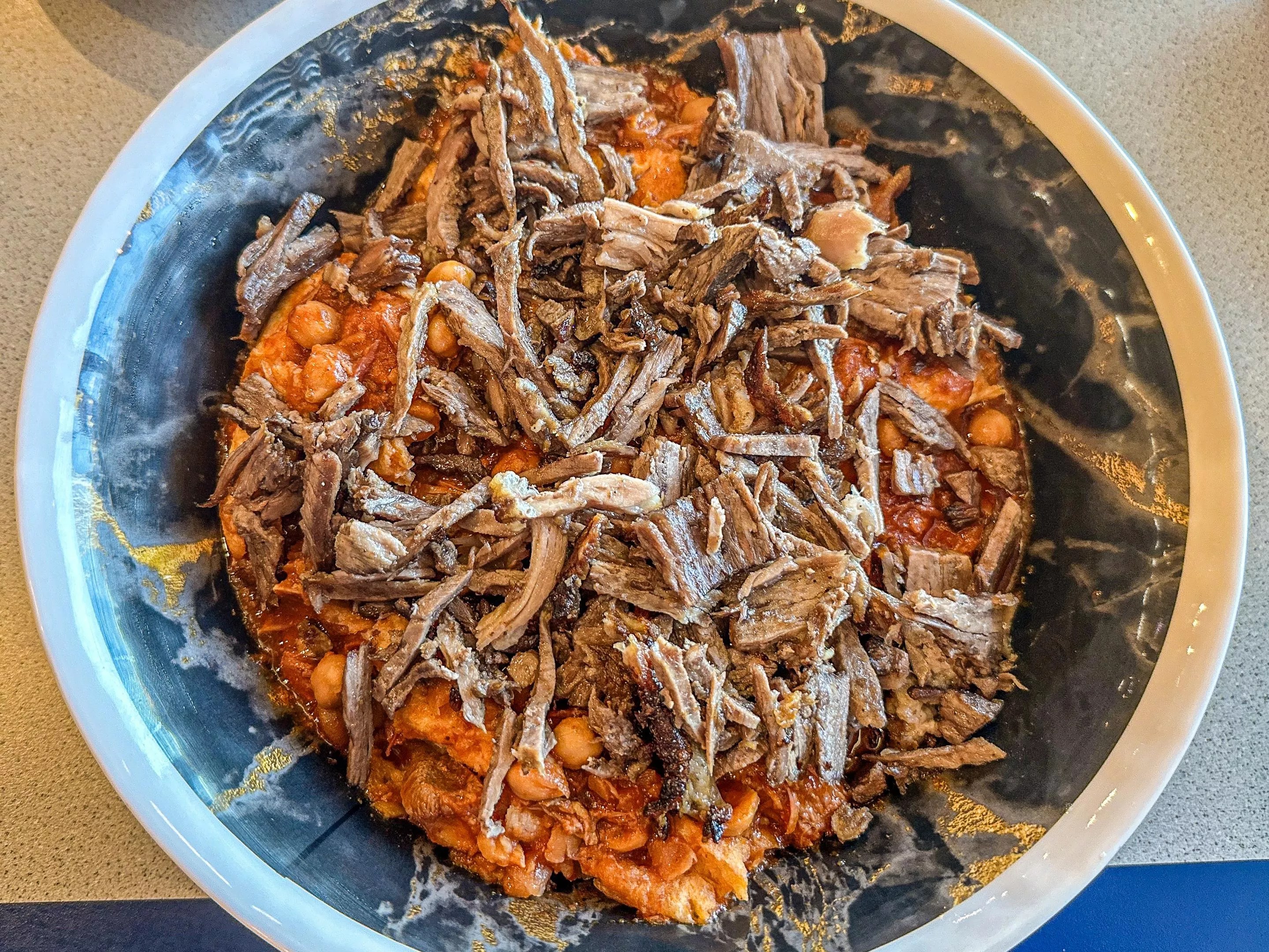 Tashreeb — lamb and beef on bread with chick peas and broth. The ultimate comfort food.