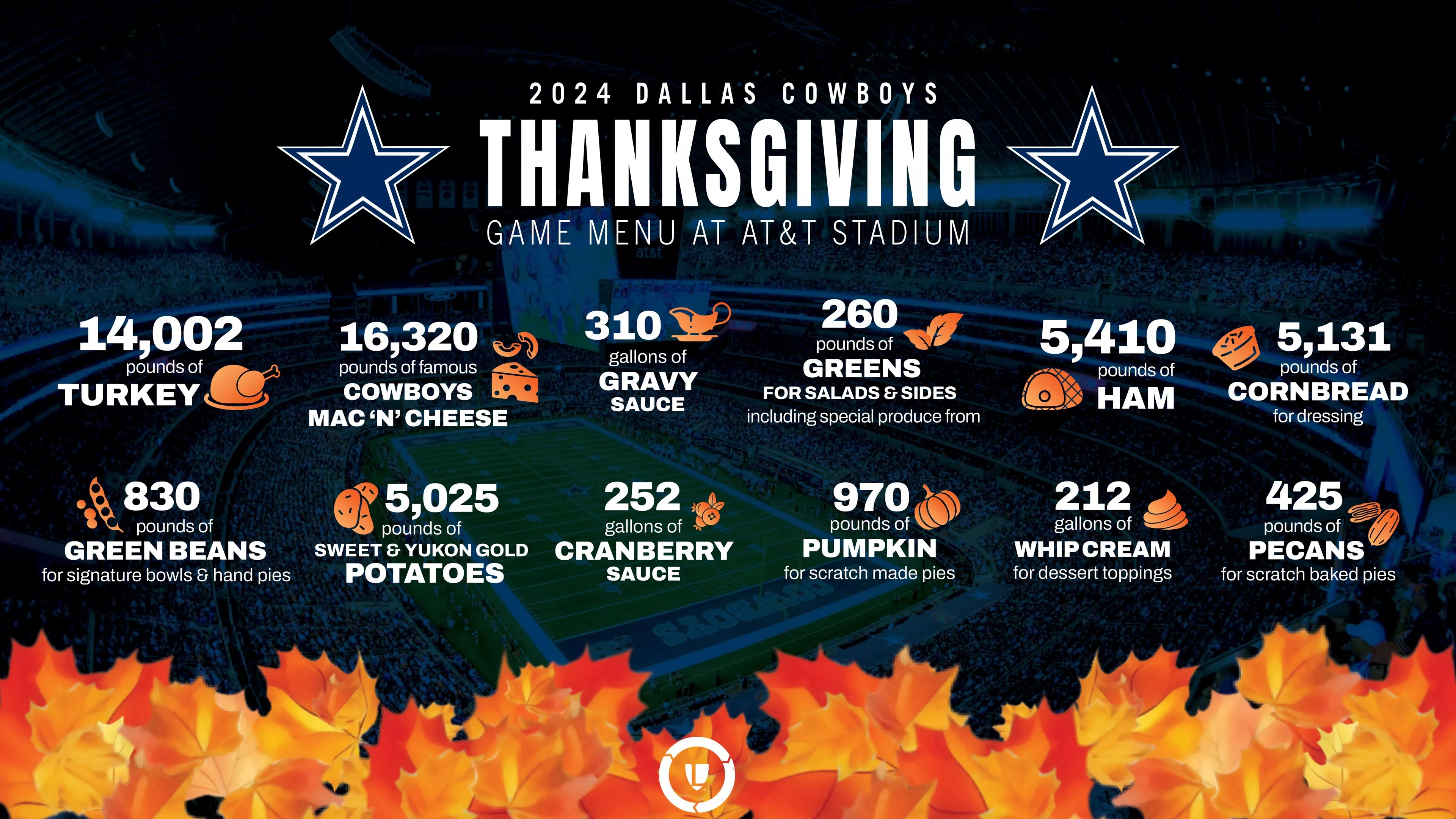 The Cowboys and Legends Hospitality plan to feed approximately 90,000 fans. Here are some game-day turkey stats on how much food fans will consume.