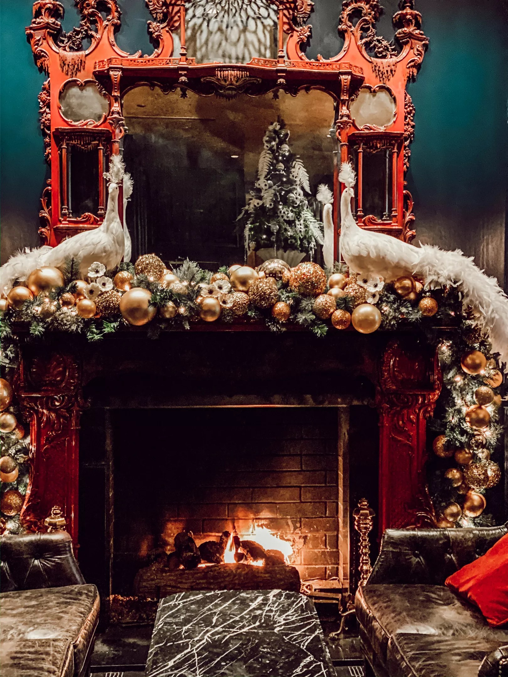 The French Room Bar is a lovely space. Dark walls and what feels like random art alongside a fireplace mantle original to the hotel create a space that makes you feel fancy. Nay, a bit bougie.