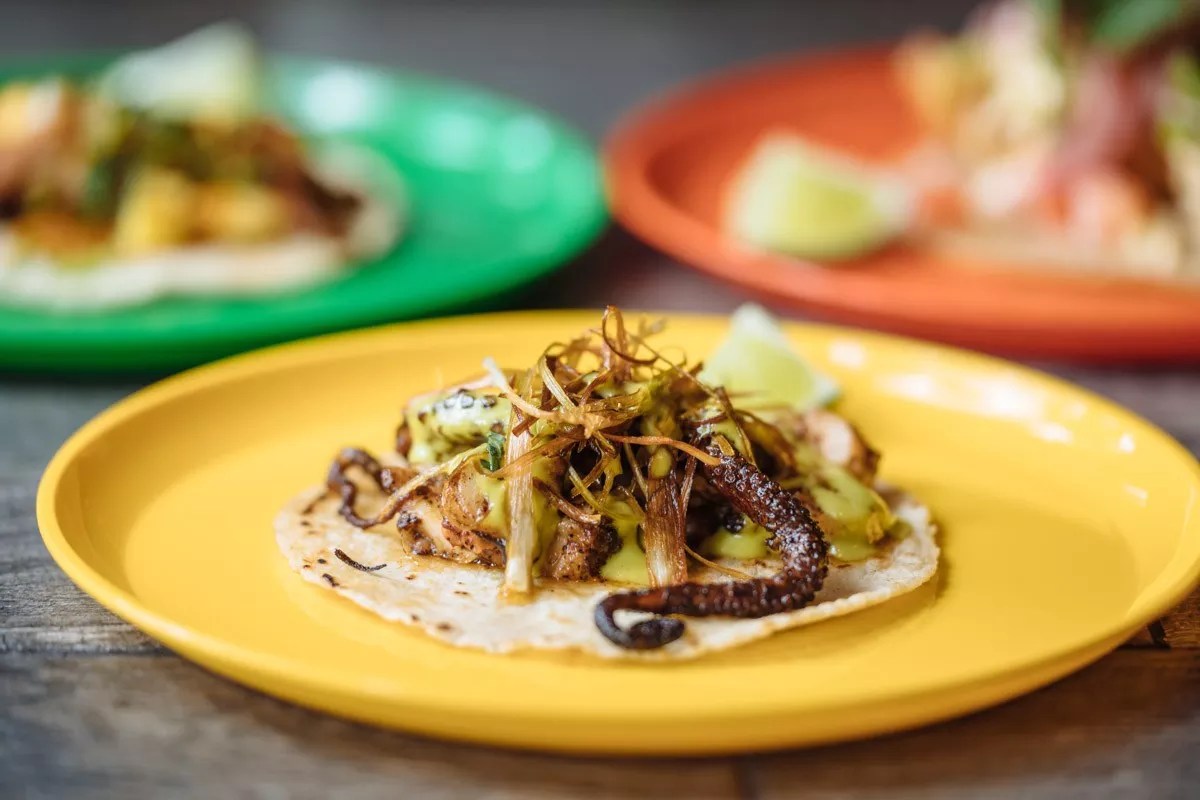 Score instant cool points by treating your date to pulpo tacos at Revolver Taco Lounge.