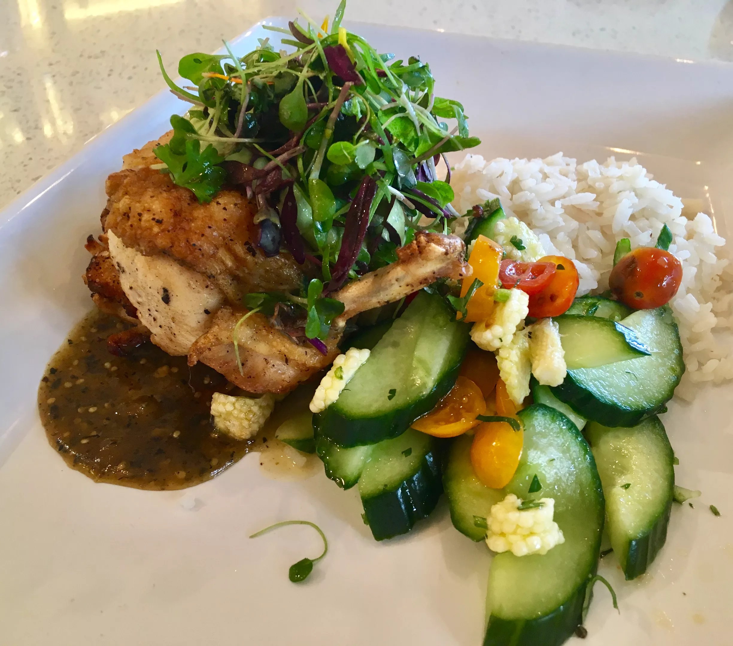 Farm-fresh produce is delivered almost daily from Hardie’s, a long-standing Texas farm distributor. All poultry is free-range, wagyu sirloin is grass-fed, and sustainable seafood includes Atlantic salmon and Mexican Pacific shrimp. The founder and owner is Hugo Miranda, who most recently filled the role as branding director for Meso Maya and was inspired to open his own healthy concept after being diagnosed with Type 1 diabetes.