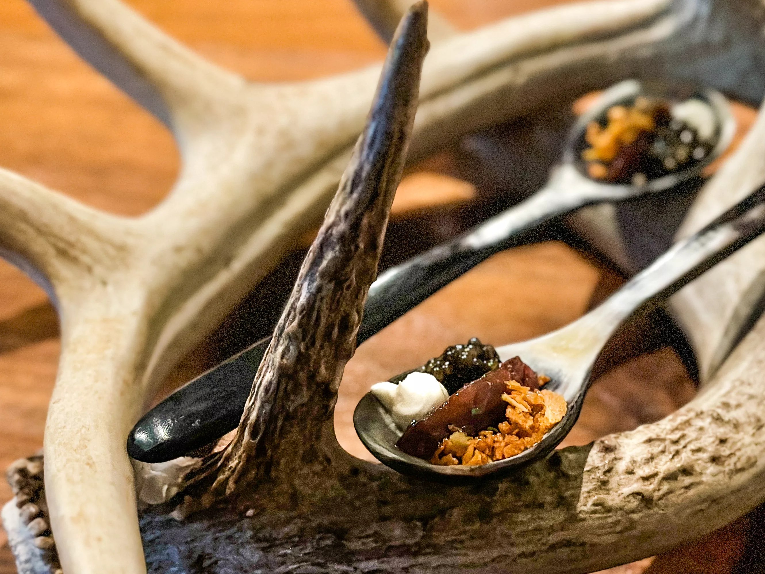 Venison tartar from Carte Blanche's tasting menu, presented in the elaborate manner that doesn't let you forget you're there for an experience.