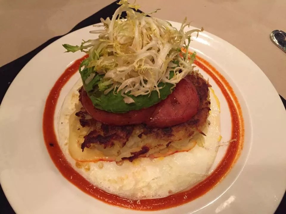 Here, a round of rosti potatoes (the Swiss version of a potato pancake) is stacked with half-scrambled eggs and a bit of Muenster before being topped off with grilled tomatoes, a generous portion of sliced avocado and frisée dressed in a sweet vinaigrette. A swirl of burnt orange chili Sriracha sauce finished the dish, which, despite its many wonderful parts, never wowed. Indeed, it proved to be an exceedingly mellow affair in both texture and taste. Next time, skip the stack and order an extra plate of biscuits and gravy.