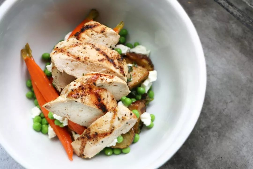 The Farmhouse Bowl has a sweet and spicy glaze and ample fresh vegetables.