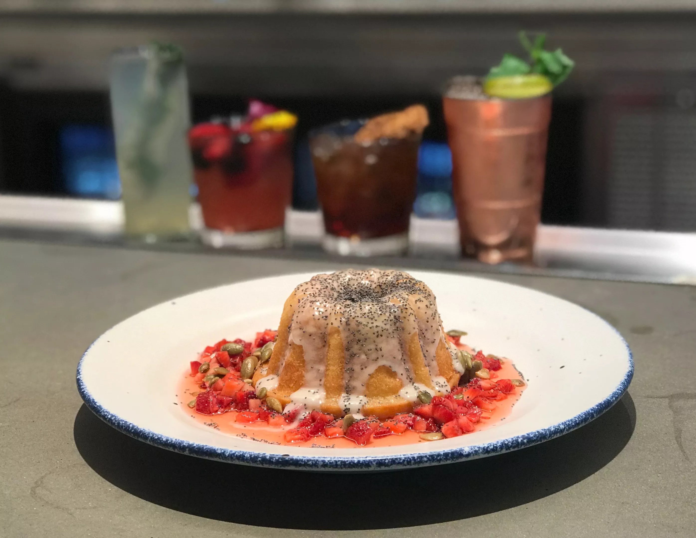 Scout’s strawberry short-bundt cake () with lemon-poppyseed glaze.