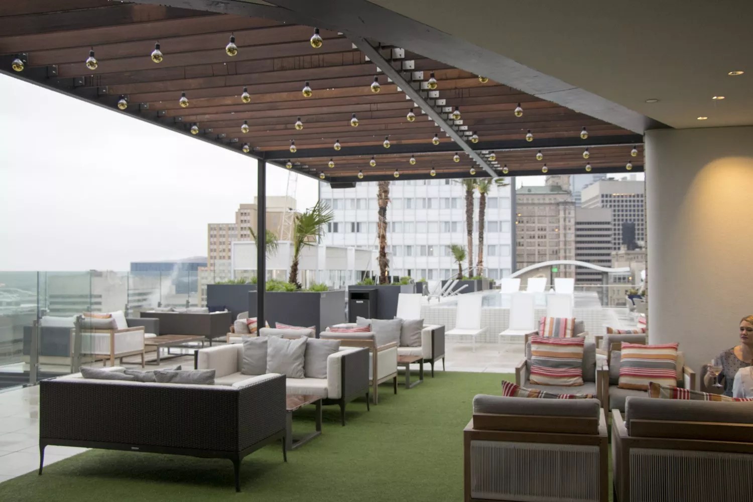 Waterproof, a casual lounge with cocktails, is open, offering a nice view of downtown from the 19th floor.