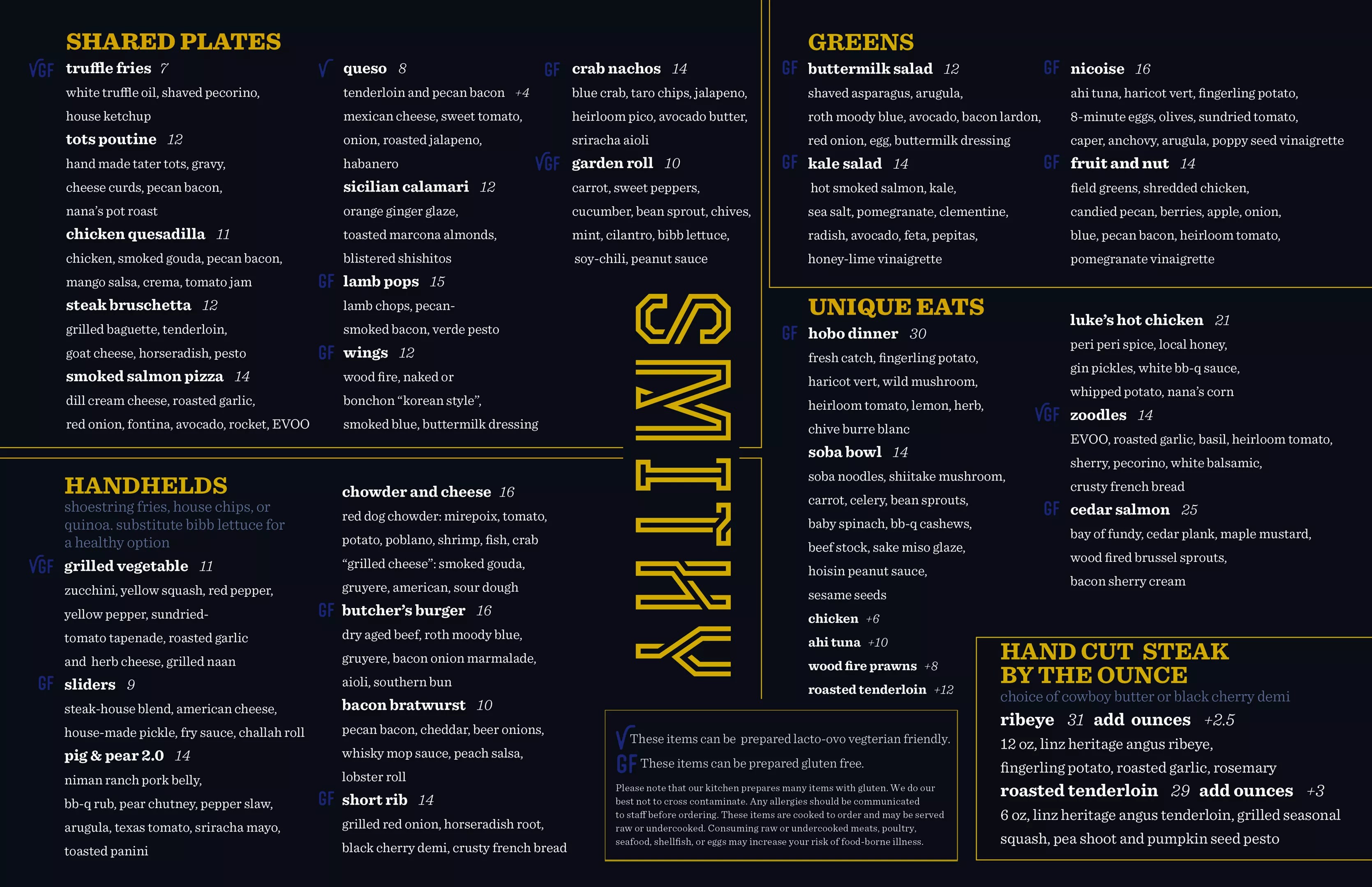 Smithy’s menu.