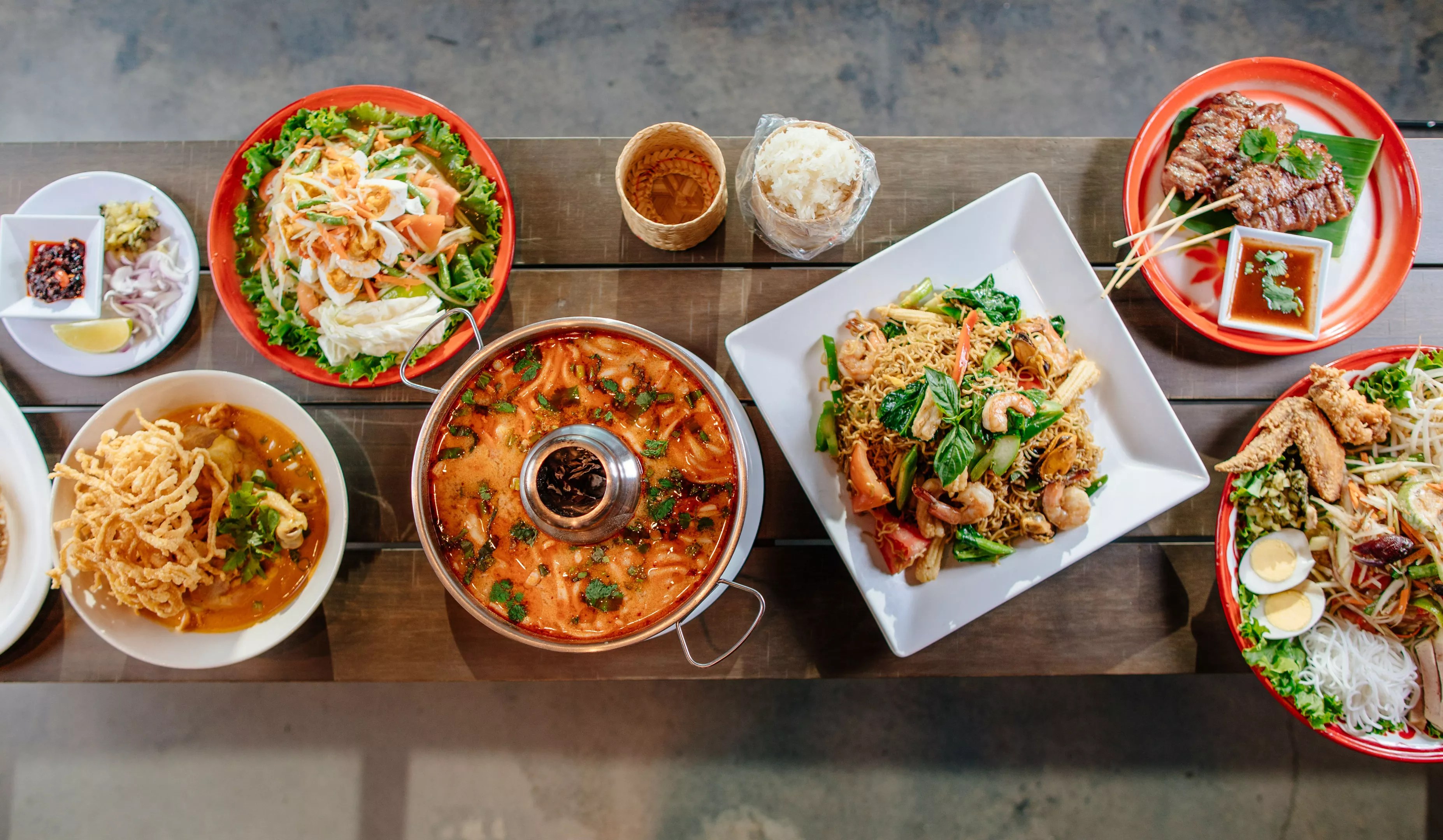 The restaurant’s offerings include tum Thai kai kem (spicy salad with egg), Thai tea and green matcha tea.