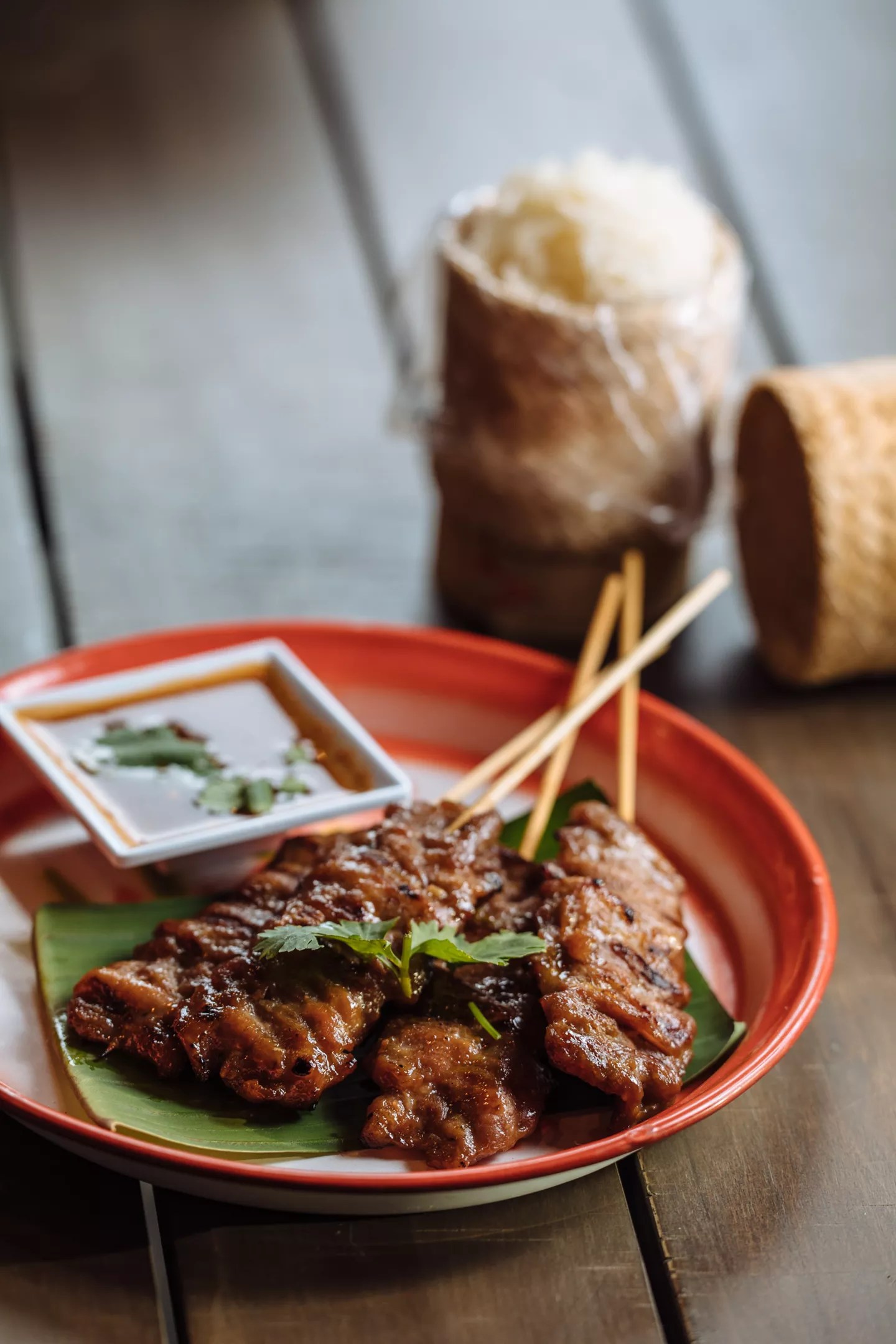 Too Thai excels at appetizers, such as moo ping with sticky rice.