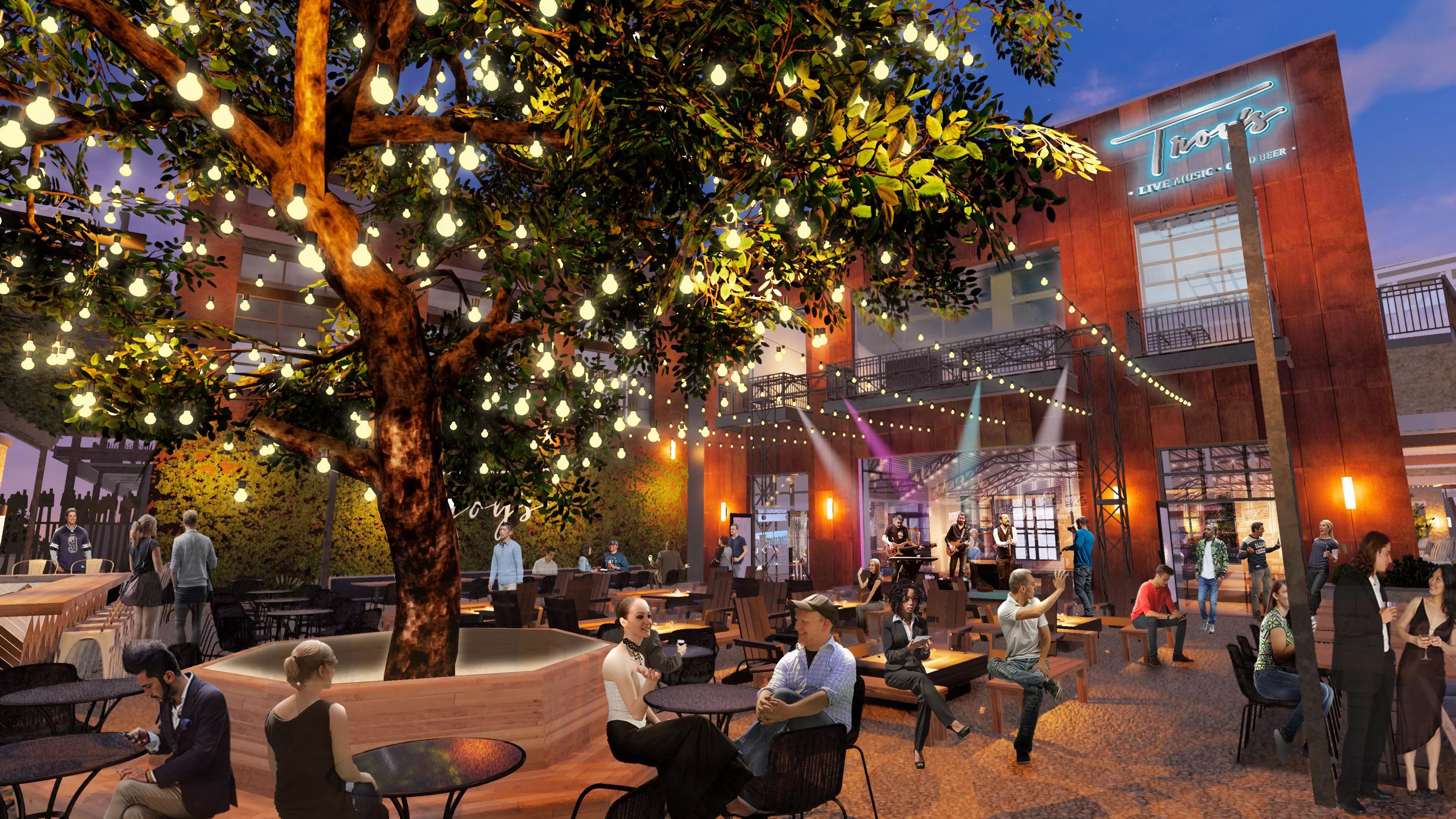 The bar, restaurant and venue “will flow from a refined rustic interior inspired from some of the best beer halls in Texas and the country to an expansive, lush outdoor patio space centered around a beautiful Live Oak tree,” according to the release. “An indoor/outdoor stage in the middle will welcome live music seven days a week featuring a variety of local and regional acts. Additionally, Troy’s will feature a major LED display for a premier sports viewing experience.”