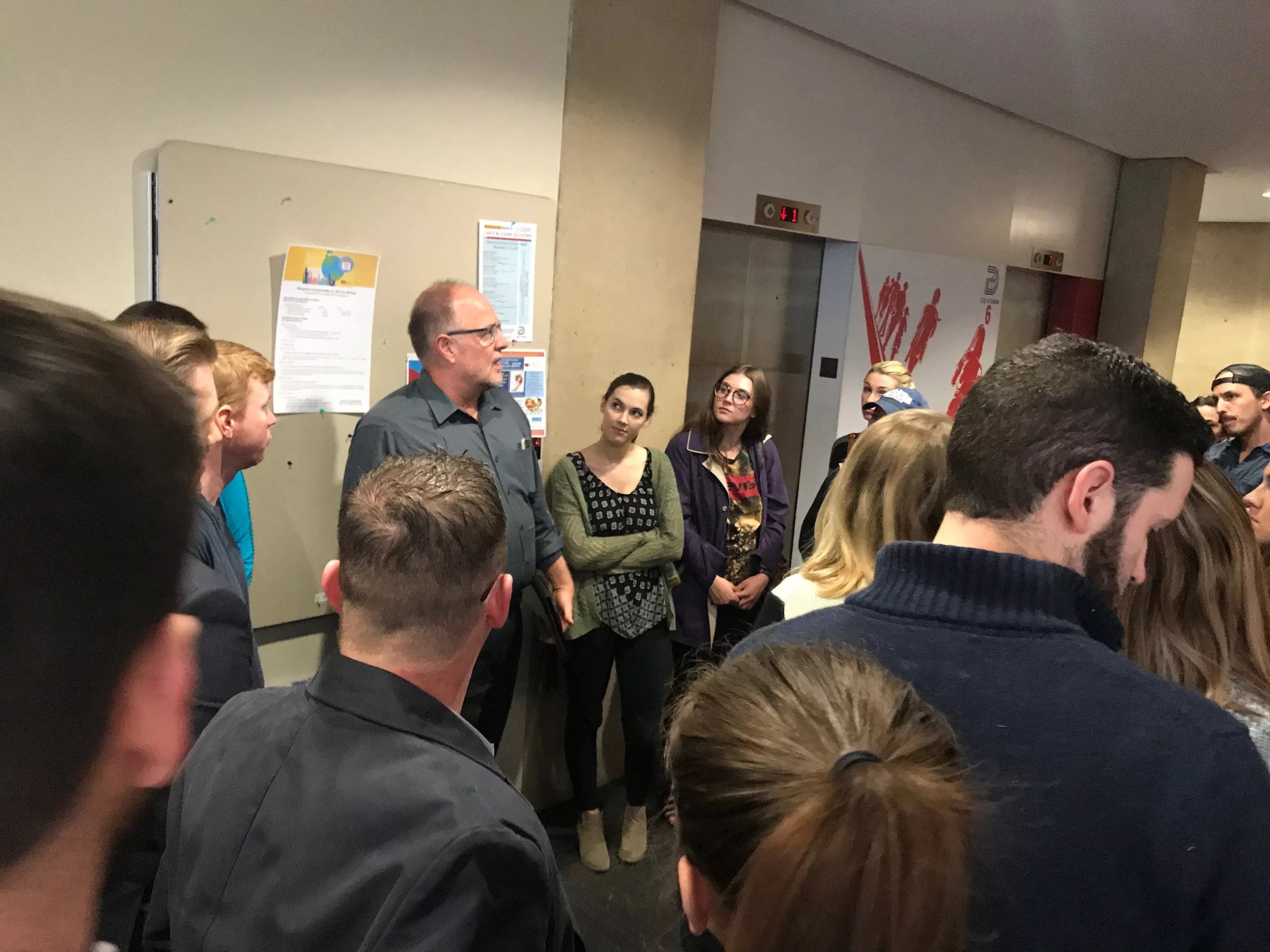 Randall White (center-left) spoke to service industry workers who are against the late-hours overlay after Monday morning’s meeting. “There’s gonna be a self-regulating body that