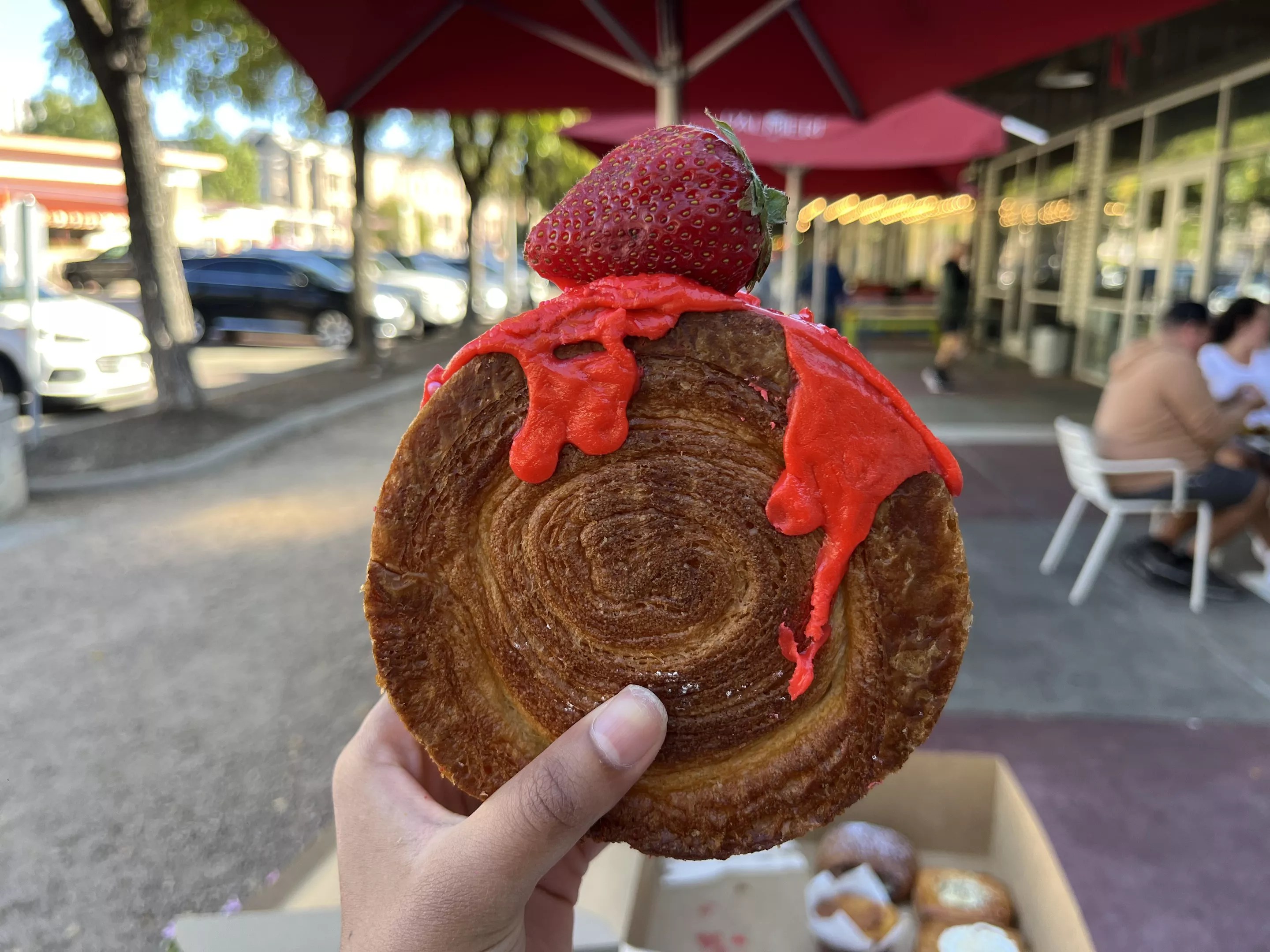 Raving Instagrammers, long lines and a whole family of support was what finally pushed the baker-entrepreneur to open a permanent spot at the market, which had its grand opening last week. While we didn’t get a chance to wait in line for a croissant at the Sunday stall, we popped by the permanent Dallas outpost this weekend to get a bite of the cream-filled, ring-shaped baked goodness.