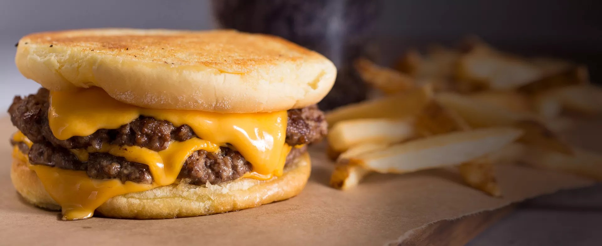 “There’s two patties and four slices of yellow American cheese. Two cheeses go on top of the buns when we put the butter on the grill. And then two more cheeses on the meat.” In other words, somewhere near you, there’s a griddle with two patties and two buns lined up in a pool of butter, all four foodstuffs topped with melting slices of cheese.