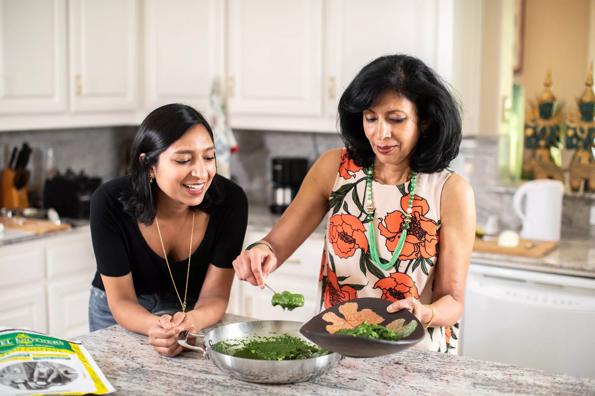“My mom very much had a rule about eating at home. Monday through Thursday and Sunday were non-negotiable,” Priya says. “We had to eat at home and had to eat as a family.”