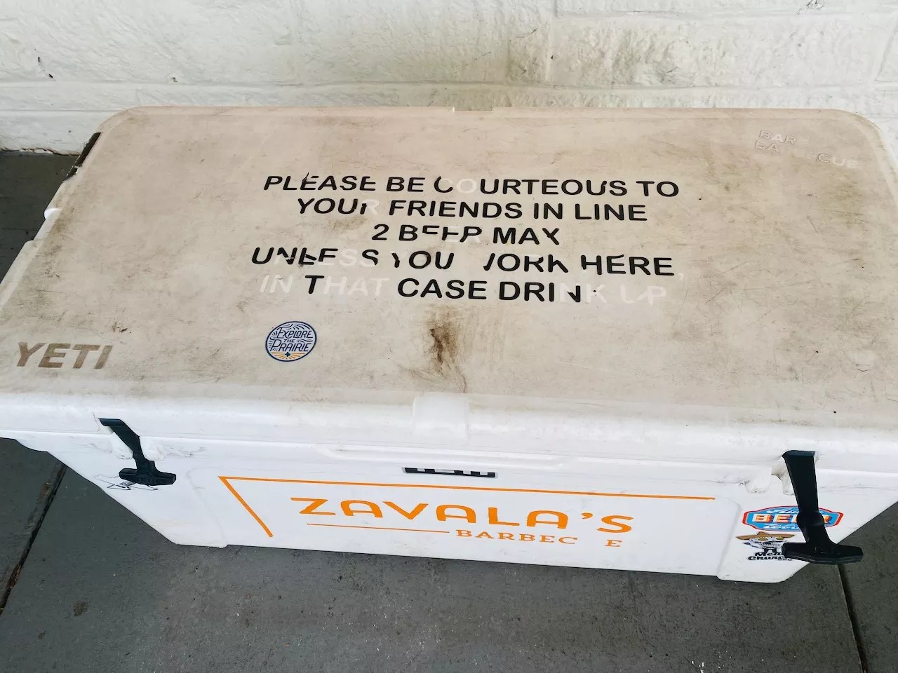 This cooler just outside the door at Zavala’s helps take the edge off the wait.