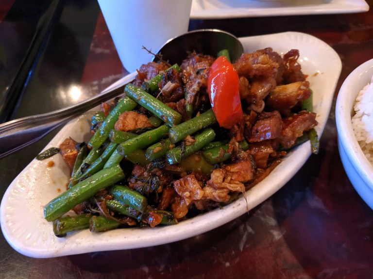 Fun fact: In case it’s not enough to order off the Thai menu, a few items on the main menu can also be made “Thai style” if you ask. Practically, by the way, Thai style means modifications like using freshly chopped hot peppers rather than a powder or spice mix.
