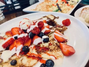 If you don’t find interest piqued by anything particular on the menu, go for the all-inclusive create-your-own option. Choose from toppings like Oreo, cheesecake, or peanut butter for your pancakes, crepes, waffles, or French toast. There’s no limit to how many toppings you can choose, which is both dangerous and wonderful.