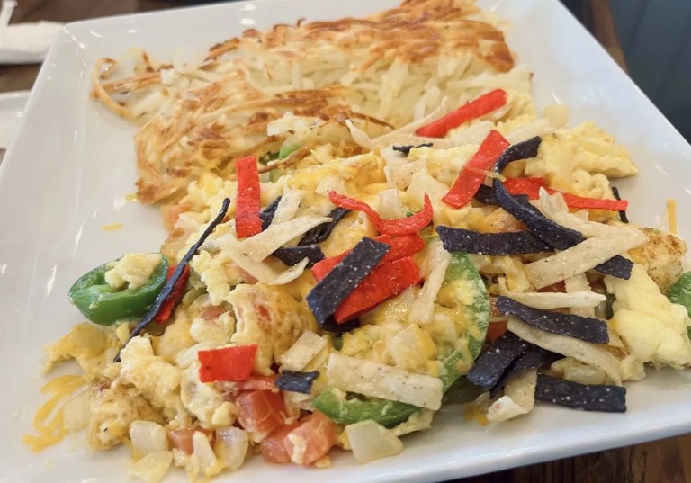 Berries and Batter is perhaps best known for their sweet breakfast options ranging from pancakes to crepes to waffles to French toast. Try the famous B&B crepes, a plate that comes with thin crepes, fresh berries, mascarpone, cream cheese and a raspberry glaze. They also serve lingonberry crepes with a sauce “specially imported from Sweden.”
