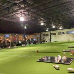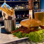 Bowl Games is is a sporting lounge with a restaurant and bar. If you like to both watch and participate in a little competition, this is a great spot for groups or dates. There’s a long bar with more than two dozen craft beers on tap – many local – along with a full bar. We grabbed a spot at the bar, which had a couple of TVs nearby, and ordered a couple of beers along with a burger and fries. The bartender suggested Dallas’ Best Burger ($17), which comes with fries. It’s a tall burger made with ground wagyu, caramelized onions and candied bacon splayed out over a large leaf of lettuce with a special sauce on a toasted brioche bun. This is everything you want a bar burger to be on a Saturday night. The candied bacon, as shown in the picture below, is fighting hard to be the star of the show here. It’s actually a candied bacon burger with some beef and a sheet of lettuce. Reservations for pin toss are highly recommended for the games.
