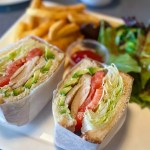 There’s also a nice savory menu. Sandwiches ring in a bit on the high side, but they do come with fries, a salad and choice of hot tea or coffee during lunch until 3 p.m. We chose the grilled chicken and avocado sandwich, each half individually wrapped in paper and full of flavorful chicken, crispy lettuce, ripe tomato and avocado on toasted white bread. The fries were good as well, and the salad simply dressed.