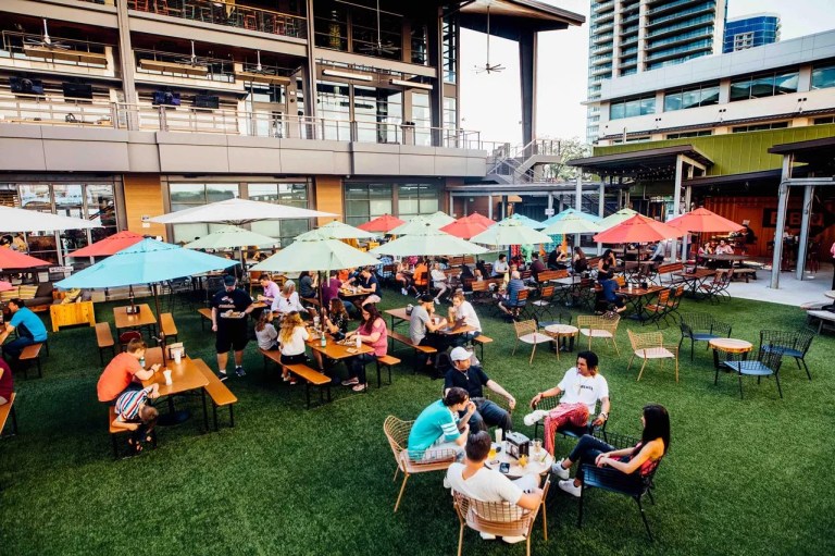 Legacy Hall in Plano has it all. It’s a hub for live entertainment, bars and restaurants that seats more than 400 people, with additional standing space to hold up to 1,200. The place rocked into their grand opening with a performance by Denton-born singer-songwriter Sarah Jaffe. The outdoor portion of Legacy Hall is called the Box Garden. The name comes from the facility’s use of repurposed shipping containers. This self-proclaimed patio on steroids has an outdoor stage, games, and food and drink options. Two large cocktail bars, a wine bar, an award-winning craft brewery and about 20 eateries make for a hell-of-a-happy hour. It’s a hot spot for cover bands, sports game watch parties and trivia nights.