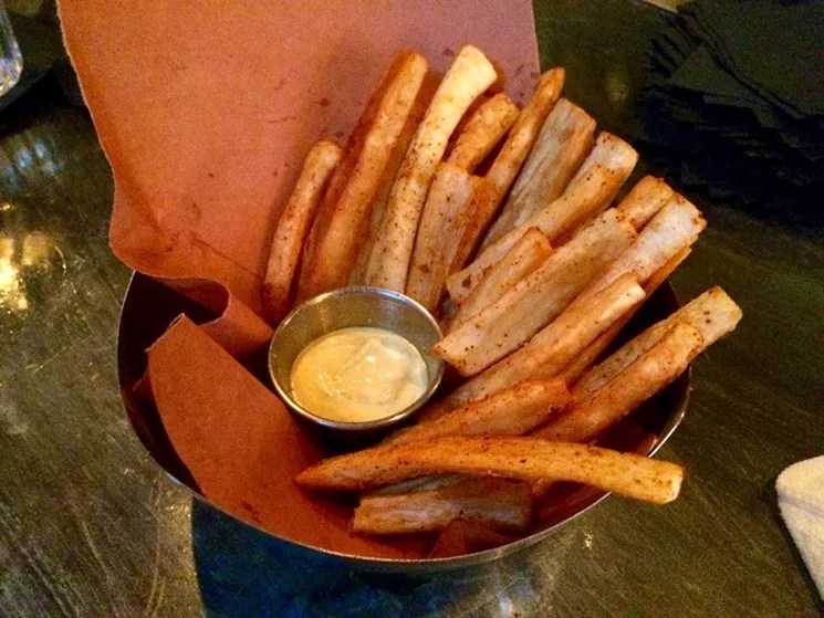 On Premise delivers what can only be described as a unique dining experience to its Deep Ellum customers. Metal gears and the dim glow of antique light fixtures loosely evoke a set for a steampunk film, with high-back chairs and Victorian couches adding to the theme. This is the backdrop for cliché dance music, but thankfully, the tunes come with a side of good eats. Don’t miss the wok-fried cashews or anything on the menu with an Asian influence.