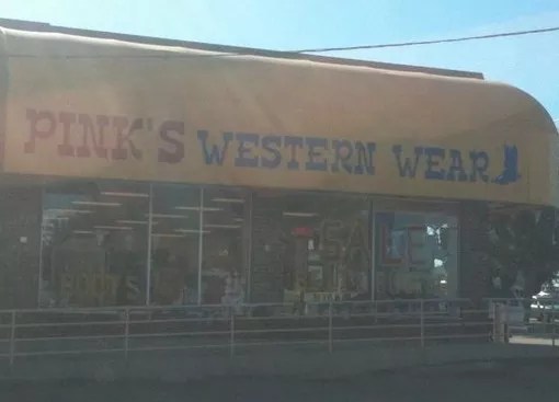 Pink’s Western Wear Neighborhood: North Dallas 13420 Preston Rd., TX, 75240 Map It 972-392-7465 Website Best Of Dallas Observer® Awards 2013 BEST PLACE TO BUY COWBOY BOOTS advertisement advertisement Trending Critic's Notebook Taylor Swift's The Life of a Showgirl Songs, Ranked Worst to Best By Carly May Gravley Critic's Notebook Why Did Viagra Boys’ Sold-Out Dallas Show Start an Hour Early? By Vanessa Quilantan Transportation Trouble Isn't Over Yet For DART By Alyssa Fields Restaurants The Best Sandwich Shops in Dallas By Lauren Drewes Daniels