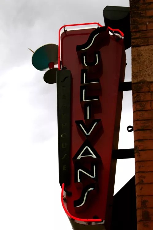 Good, reasonably priced steak with largely uninspiring sides in a comfortable, well-serviced atmosphere. Ringside at Sullivan’s bar hops with swing and blues Friday and Saturday.