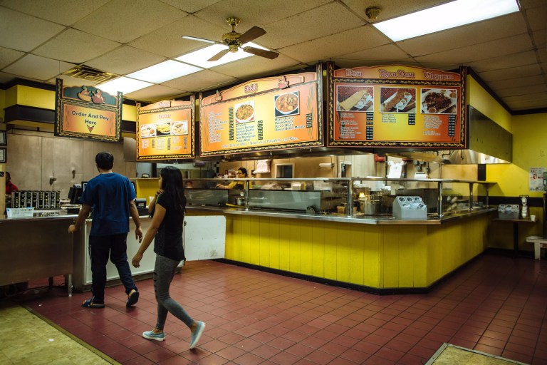 First-timers to Taj Chaat may well be overwhelmed with choices, but that’s a feature, not a bug. Inside this restaurant’s rambunctious dining room, at least four walls are covered with all-vegetarian menu choices ranging from enormous, excellent dosas to trays of tapioca vada (fritters). To try a sampling of dishes, order a thali, although again there are several varieties of thali available, representing different parts of India. Listen carefully after ordering, because your order number could be called from one of several locations depending on the cooking technique you’ve requested. On the way to your table, stop by the chutney bar and load up.