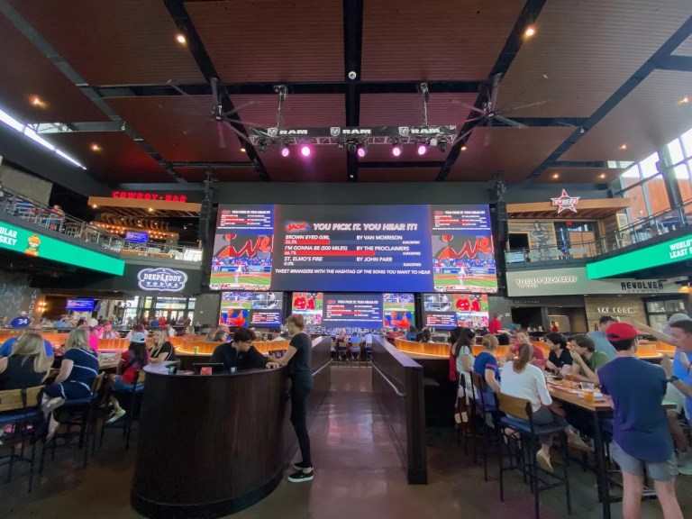 Just outside Globe Life Field is a bevy of restaurants and bars, all housed under one roof called Texas Live! And if you’ve ever thought, “Sure wish I could watch the game somewhere fun tonight” this is your home. Before a Rangers game, it’s packed with families and sports fans scarfing down plates of nachos and sipping cold drinks. The ginormous screen at the center of it all, including many other TVs around it, makes this one of the best places to watch a Stars or Mavericks playoff runs. Neighbors include Troy Aikman’s restaurant and live music place, aptly called Troy’s. Texas Live! host concerts, DJs, family movie nights watch parties and serve local craft beer and whisky.