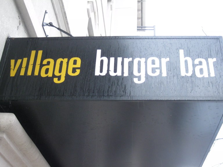 Is it a bar or a counter-service burger joint? Village Burger Bar–a brightly lit, sleek, crisp and minimally decorated spot nestled in an enormous glorified strip mall called the West Village–is both. Along with decent burgers that come with regular or sweet-potato French fries, the bar offers premium liquors and a small but interesting selection of beers including Belgians and domestic craft brews.