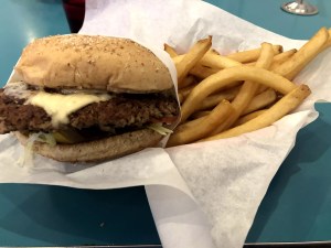 Is it a bar or a counter-service burger joint? Village Burger Bar–a brightly lit, sleek, crisp and minimally decorated spot nestled in an enormous glorified strip mall called the West Village–is both. Along with decent burgers that come with regular or sweet-potato French fries, the bar offers premium liquors and a small but interesting selection of beers including Belgians and domestic craft brews.