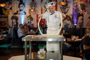 Wok Star offers a range of authentic Chinese dishes and hand-pulled la mian noodles in the ambiance of Top 40 hits. The space has a bright red aesthetic with paintings of icons like David Bowie, Lady Gaga and more. Cocktails reference rock stars too; The sweet I’m Too Sexy is made with Deep Eddy lime vodka, Malibu watermelon rum, lime soda and grenadine, adorably topped with an arrangement of Sour Patch kids. A more groovy concoction is the Uptown Funk, made with rum, Cristal, blood orange liqueur, lime and pineapple. Be adventurous when ordering. Sure there are traditional dishes, but go for the la mian, which are noodles hand-pulled in-store daily. Chef Charlie Zhang may even put on a noodle slinging show for you. Overall, Wok Star is a fun place to hang out and vibe over good music and drinks.