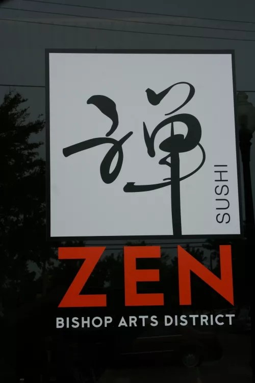 Zen Sushi’s meditations are focused on the artifacts of the plate, nearly to the exclusion of all else. The surroundings are comfortable yet Spartan and reek of soul, much like the austerity of sushi’s exacting craft and discipline. At the end of the sushi bar is a pulpit to such craft, a space where chef Michelle Carpenter turns this discipline and exactitude into performance art with her Omakase dinners. Omakase means to entrust, and traditionally the omakase onegaishimasu is an experience that grants chefs the authority to indulge whims. Such whims may include Southwestern strokes-cilantro, lime, jalapeño-or a specific “market-fresh catch” of the day with which she molds every square inch into an exalted scintilla. Her sushi is impeccable: cool, smooth and silky, like eating finely woven spring water over rice. Cool, racy strips of Spanish mackerel smoothly sliced from a whole silvery fish. Knolls of bright, fluffy tobiko. Tongues of rich uni over barren billets of rice. Zen Sushi is a raw fish respite blazing trails in Oak Cliff’s Bishop Arts District, that small neighborhood enclave that is slowly hoisting itself onto the pedestal of urbanity. Let the raw battle rage.