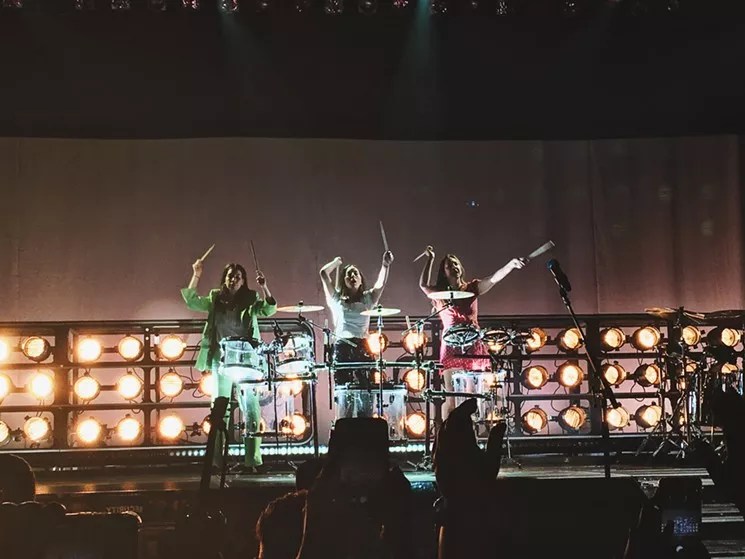 Flames, backflips and puppets were only a few of the eclectic puzzle pieces that harmoniously connected when Panic! At the Disco played American Airlines Center. You didn’t need to be a fan of the band, or even music in general, to appreciate the showmanship and pageantry the rock band presented Dallas at their arena concert. When the shirtless frontman Brendon Urie played piano on a suspended platform hanging a dizzying distance above screaming fans, you were a convert to Panic’s particular brand of rock – even if for just that night. Brad LaCour