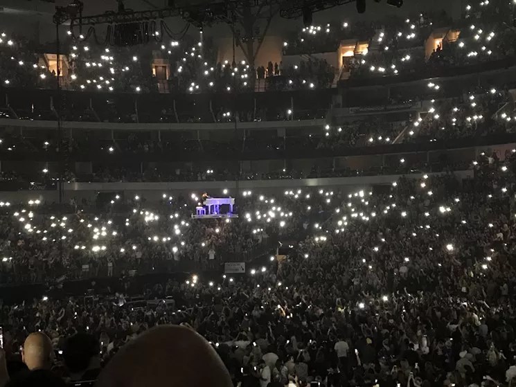 When Drake came to the American Airlines Center with a stage show of Spinal Tap-levels of extravagance, he proved he had enough showmanship in him for three rappers. On a basketball court-sized video-stage that damn near swallowed all three members of the opening act, Migos, Drake unironically danced under a floating, inflatable, yellow Ferrari. He broodily sang as thunderclouds, lightning and his own face were projected, swirling, around the stage. He put on a show that only Drake could, blurring the lines between performance art and music while reaching out to every corner of the arena. Nicholas Bostick
