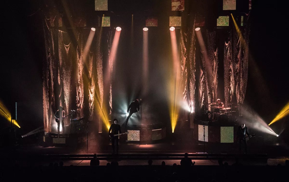 Keenan, Friedl and Iha were wrapped in shadows and fog and stood atop similar circled dais that lit up, while Howerdel and McJunkins jammed front and center on both sides of the stage.