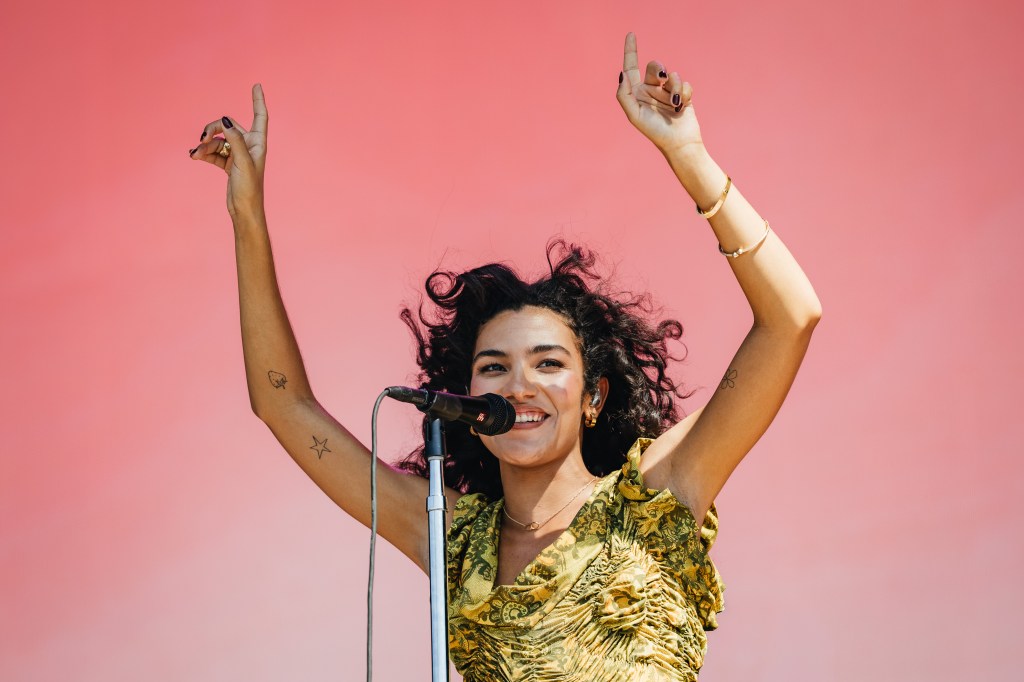 The first act we checked out was Olivia Dean, a rising musician from London in the neo soul scene. Her set was airy and fun, with a mix of jazzy and soulful. Dean was often playful with her gestures as she sang her hits like “Nice to Each Other,” “Man I Need” and “Dive.” We only wish she had moved around a bit more, especially when not playing guitar. Many artists were glued to their microphone stands this weekend, so she wasn’t alone in this habit. It’s important to find a balance and work the stage. If she can hone in her stage presence, Dean has real star potential.