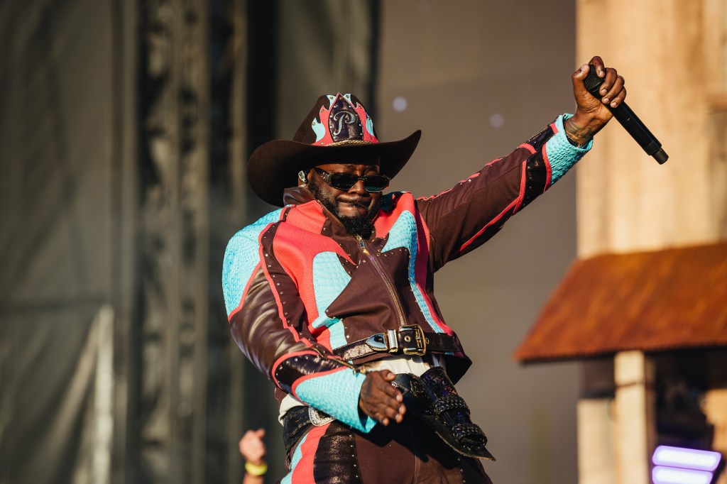 As he made his way through the set list that included a hefty 24 songs and features, he hit choreographed dance moves and ran laps around the stage. Taking a breather about 30 minutes into his set to be candid with the audience, “My stylist asked if I was sure I would be alright in leather for my outfit design and I confidently said yes. And that was a mistake.” Props to him for getting through half the set in the full leather and 95-degree direct sunlight, getting up before removing his jacket.