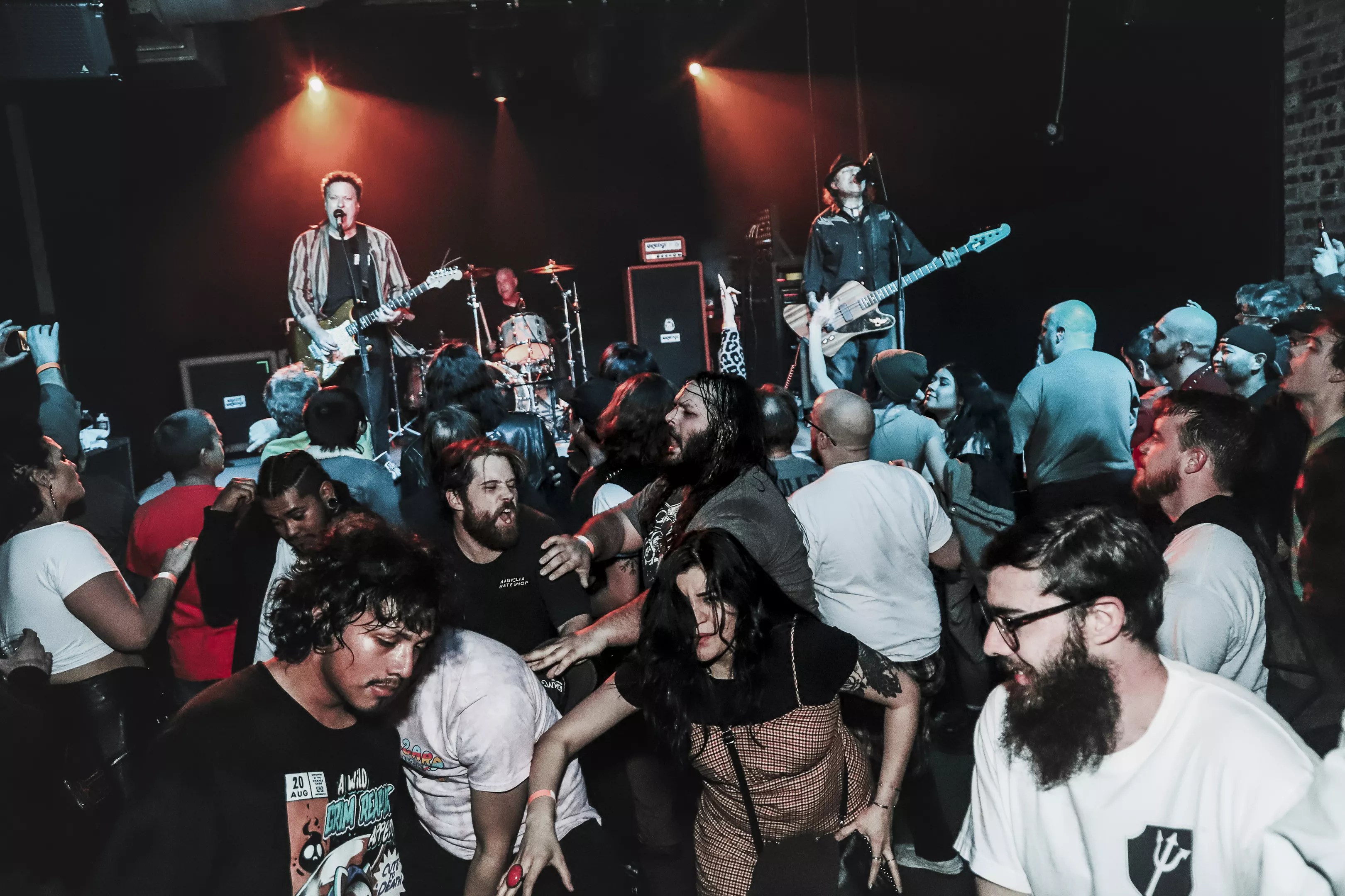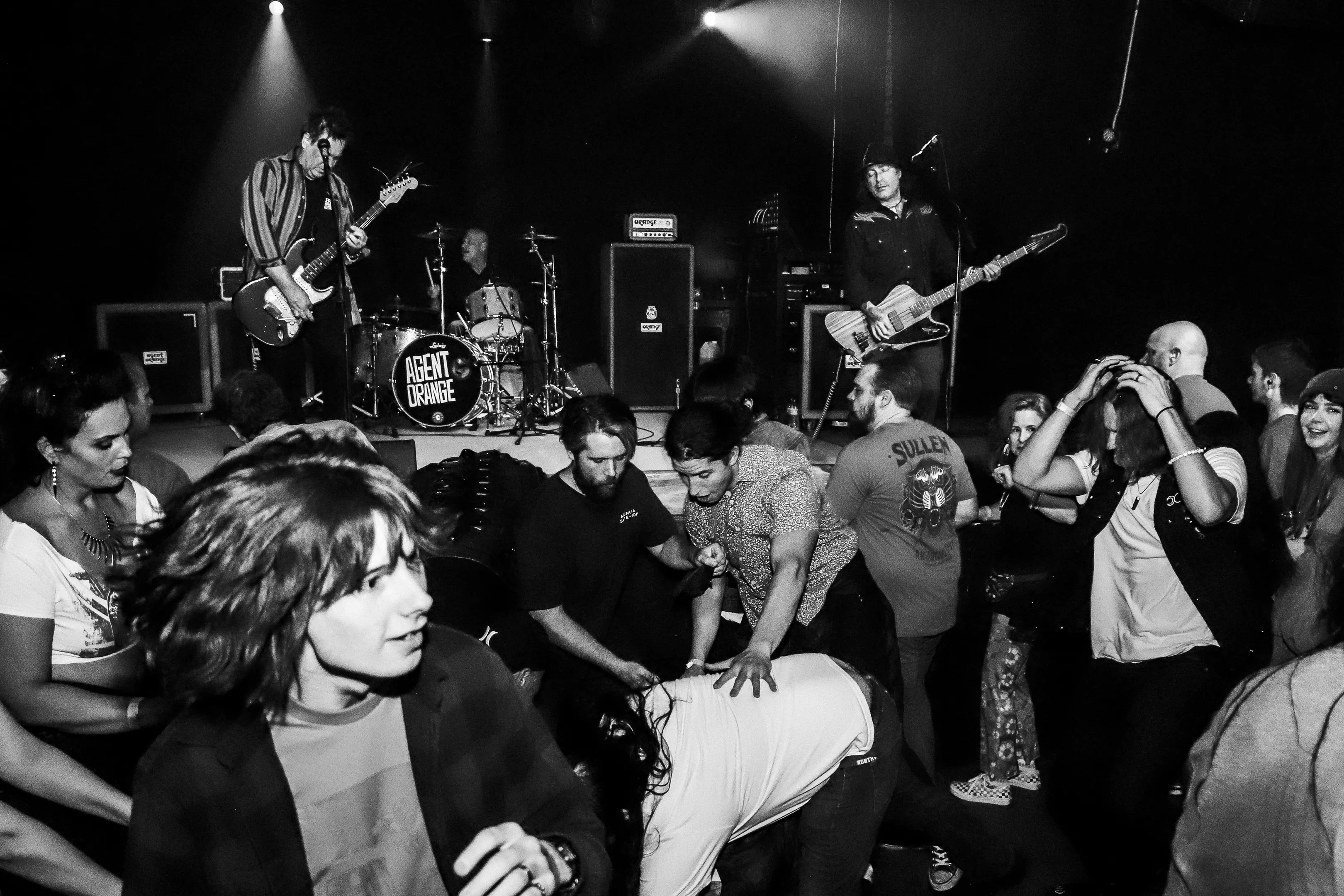 Agent Orange opened with their 1981 single “Everything Turns Grey.” But the wildest moment of the night, without a doubt, was when the trio ripped into what’s arguably their biggest song, “Blood Stains.” Arms, fists, and beer cans exploded into the air from the pit as fans playfully pushed one another and sang along.