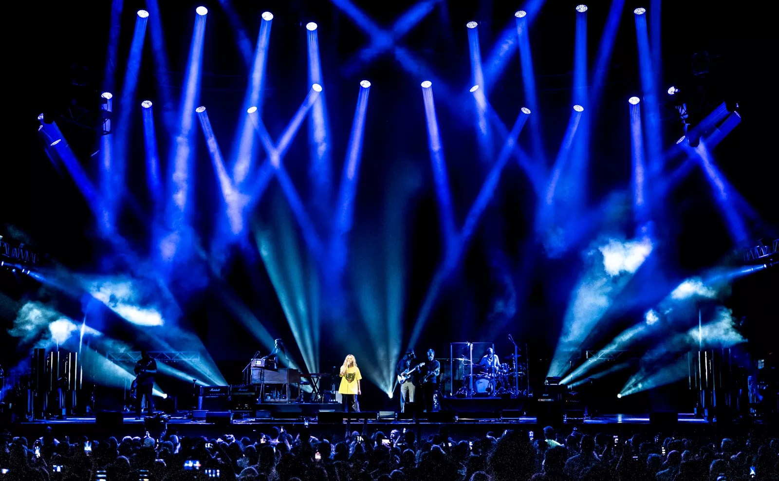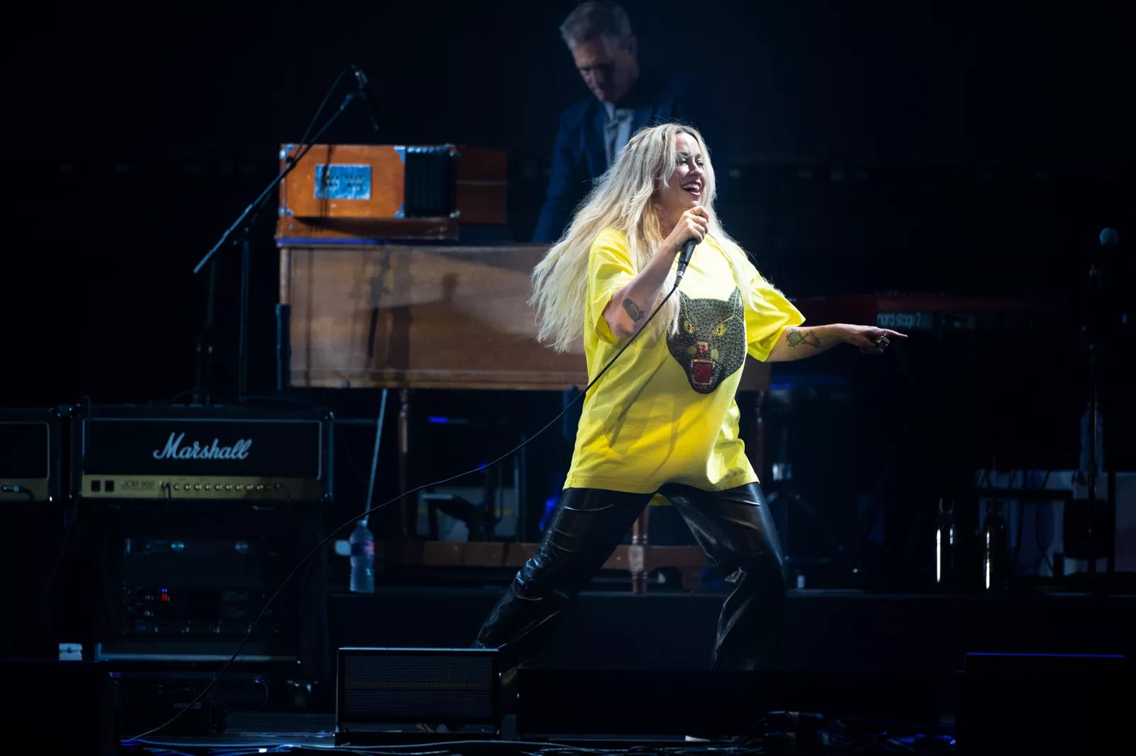 In a sparkling black and yellow dress over yellow and black leopard tights, Manson was again the focal point on stage, starting off with lesser known singles before pacifying an audience hungry for old favorites such as “Stupid Girl” and “#1 Crush.”