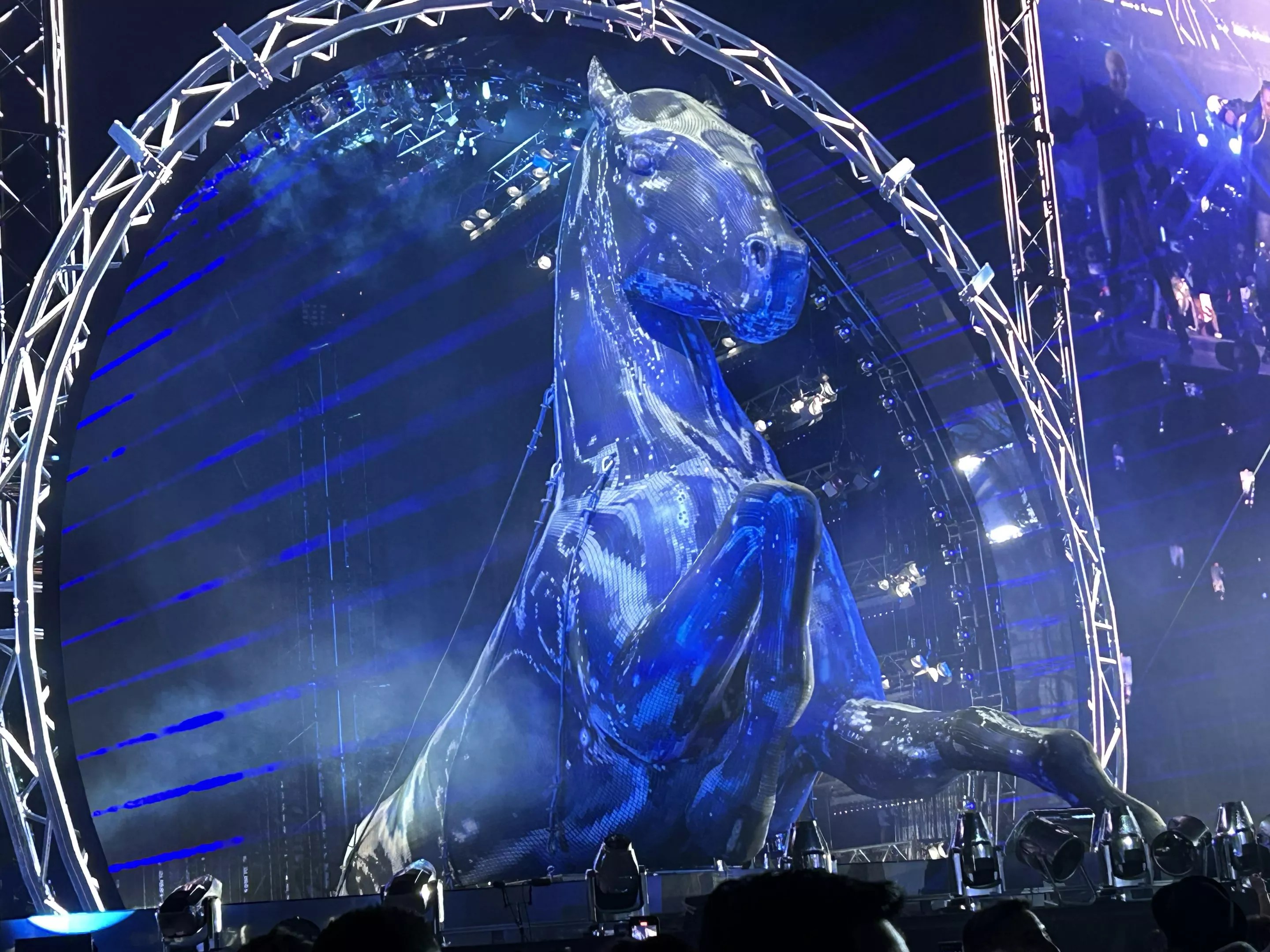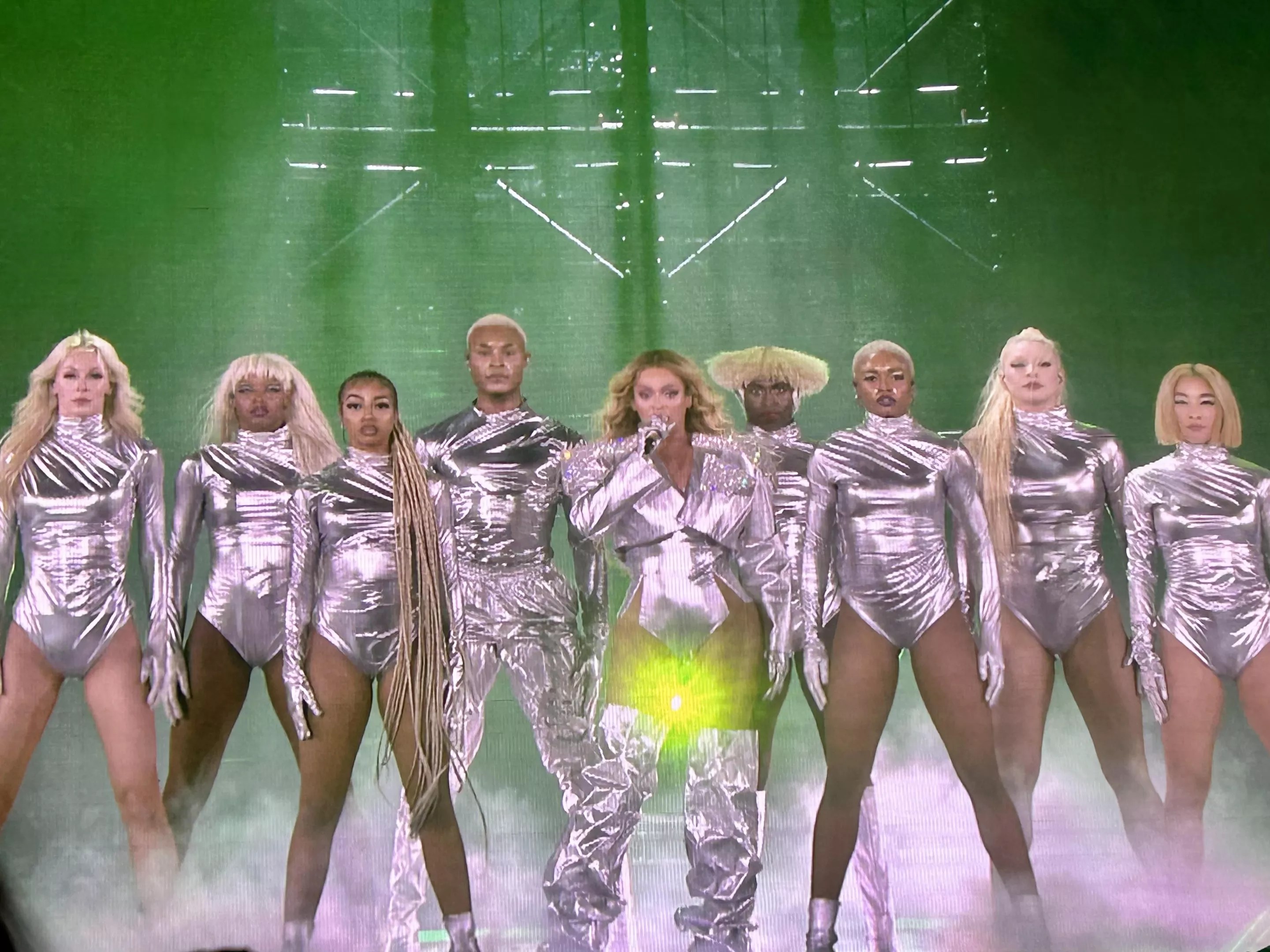 A runtime of three hours made the 1.5-hour delayed start well worth it. On the RENAISSANCE World Tour, Beyoncé has delivered production values beyond our wildest dreams, including (but hardly limited to) the mind-blowing element of costuming herself AND her dancers with arguably the year’s most revered achievement in fashion design: the geometric silhouettes of Japanese brand Anrealage by Kunihiko Morinaga, made from UV-activated color-changing fibers that lit up Paris Fashion Week and the internet this spring. The magnitude of being in the same room as such iconic custom couture was by no means lost on such a stylishly outfitted audience.