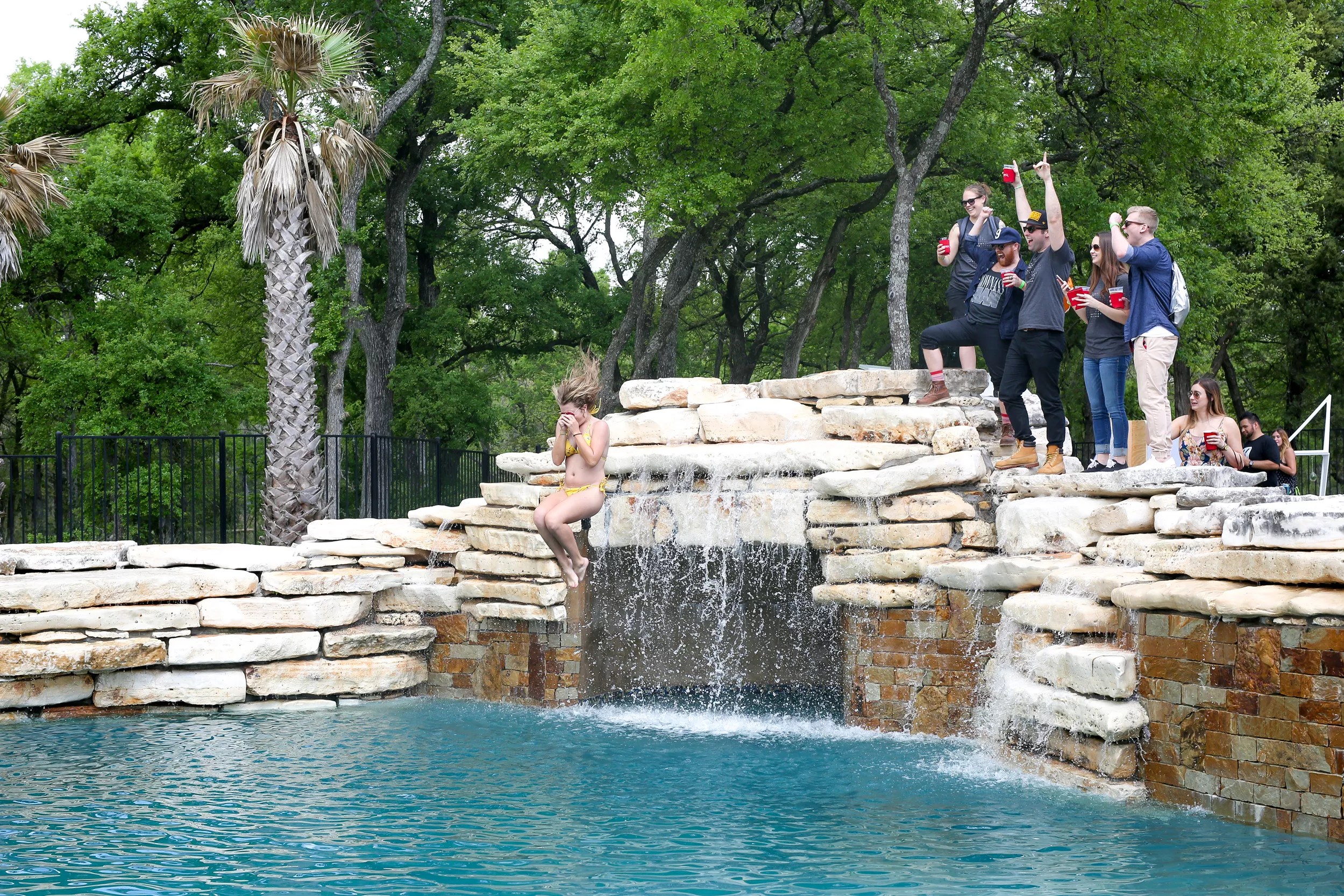 The party was held at “The Cabana,” a grotto-style pool setting with palm trees and an overall West Coast vibe.