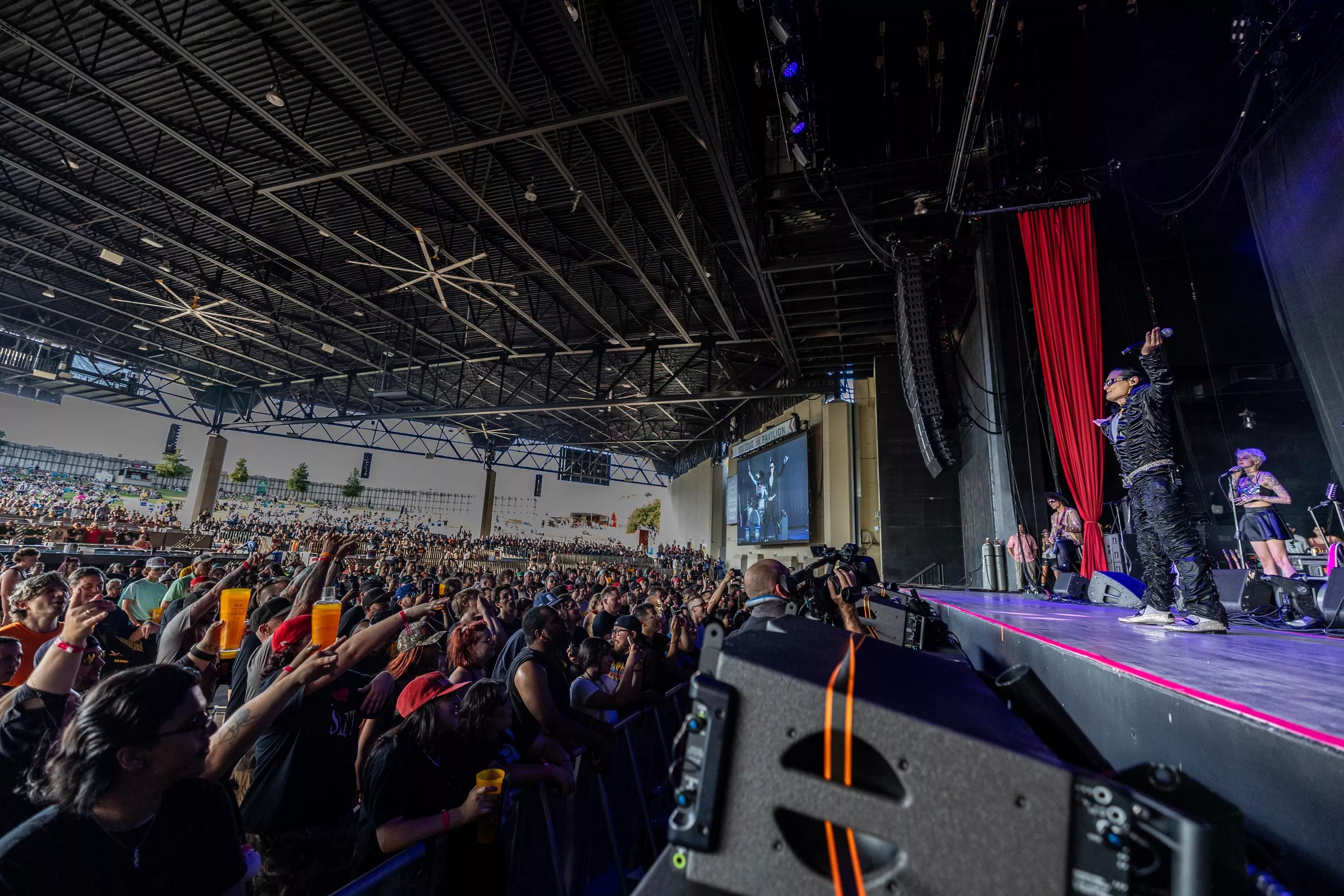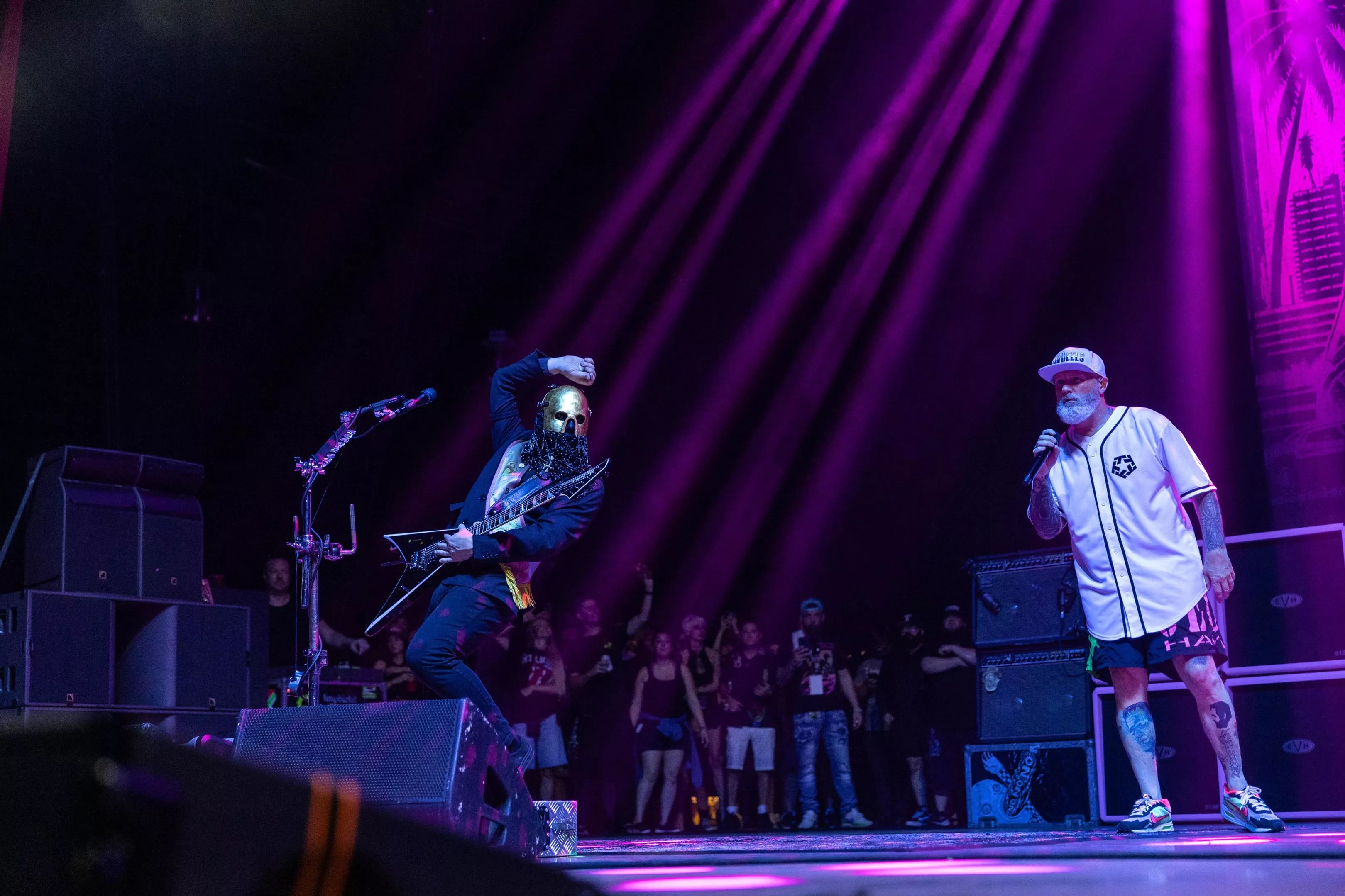 On an intensely hot Tuesday evening at Dos Equis Pavilion, The Loserville Tour came to Dallas. It was an eclectic assembly of talent headlined by Limp Bizkit and featuring the eccentric Corey Feldman, BONES with Eddy Baker and N8NOFACE, all hosted by rapper Riff Raff. Beyond the obvious theme of “Loserville,” the sub-theme was “We’re gonna party like it’s 1999.” Corey Feldman (in the background) hoverboarded on stage during Limp Bizkit’s set to film a TikTok video. Andrew Sherman