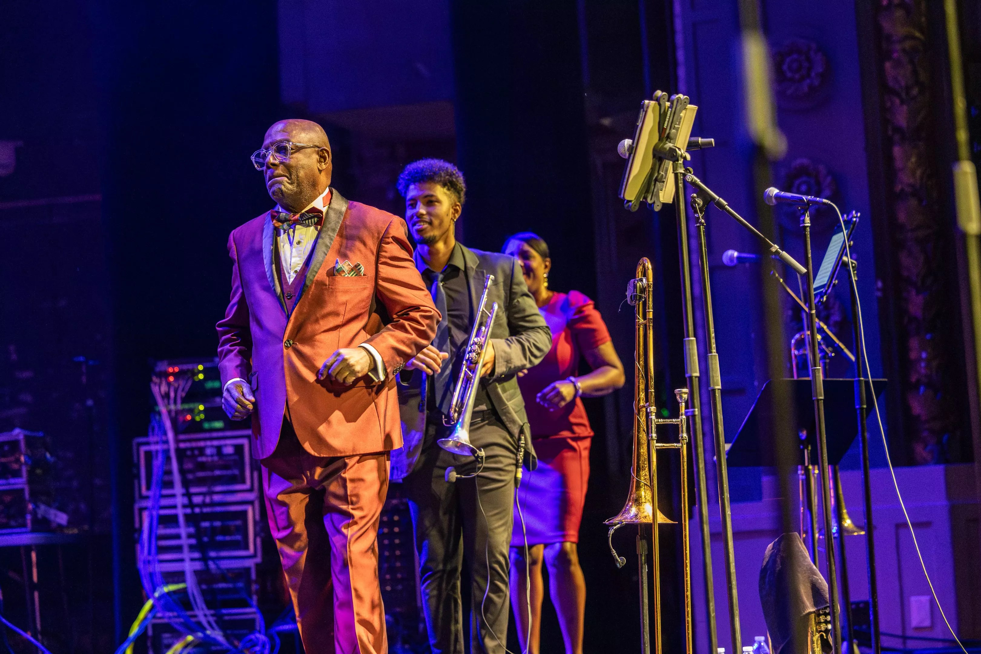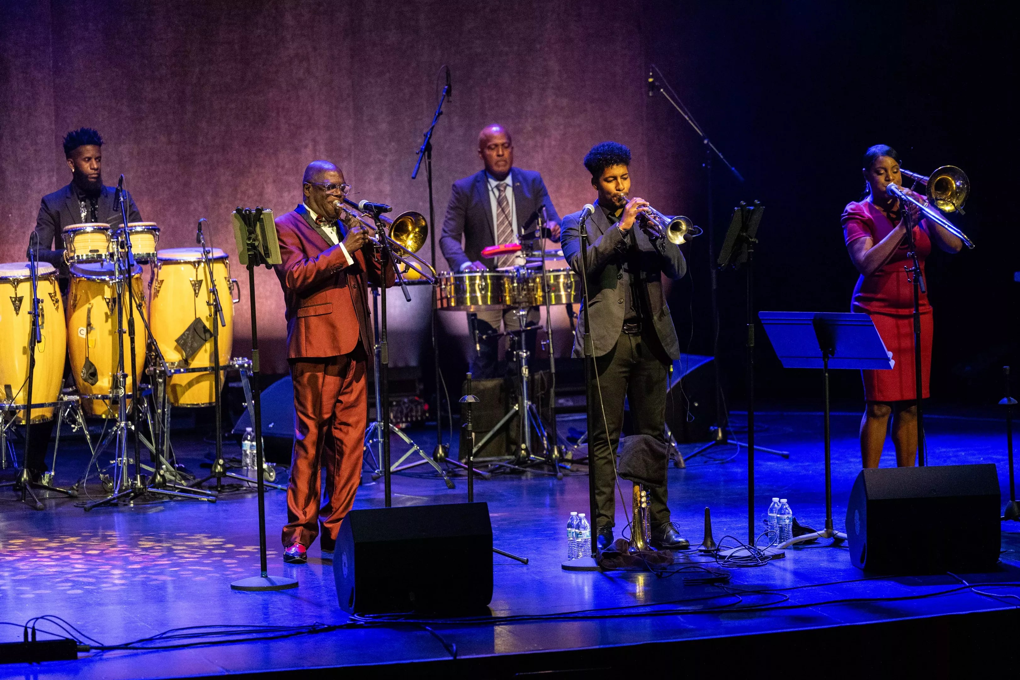 Indeed, movement was inescapable Thursday, as Ramos would break from his languid, shuffling dance to wave his hands, pick up his trombone or point and smile at his collaborators or at the audience before him. Only the back row of musicians (Ruiz, Garcia, Marin and Borayo) were largely stationary, while the front row – everyone else – danced, shook, shimmied and clapped.
