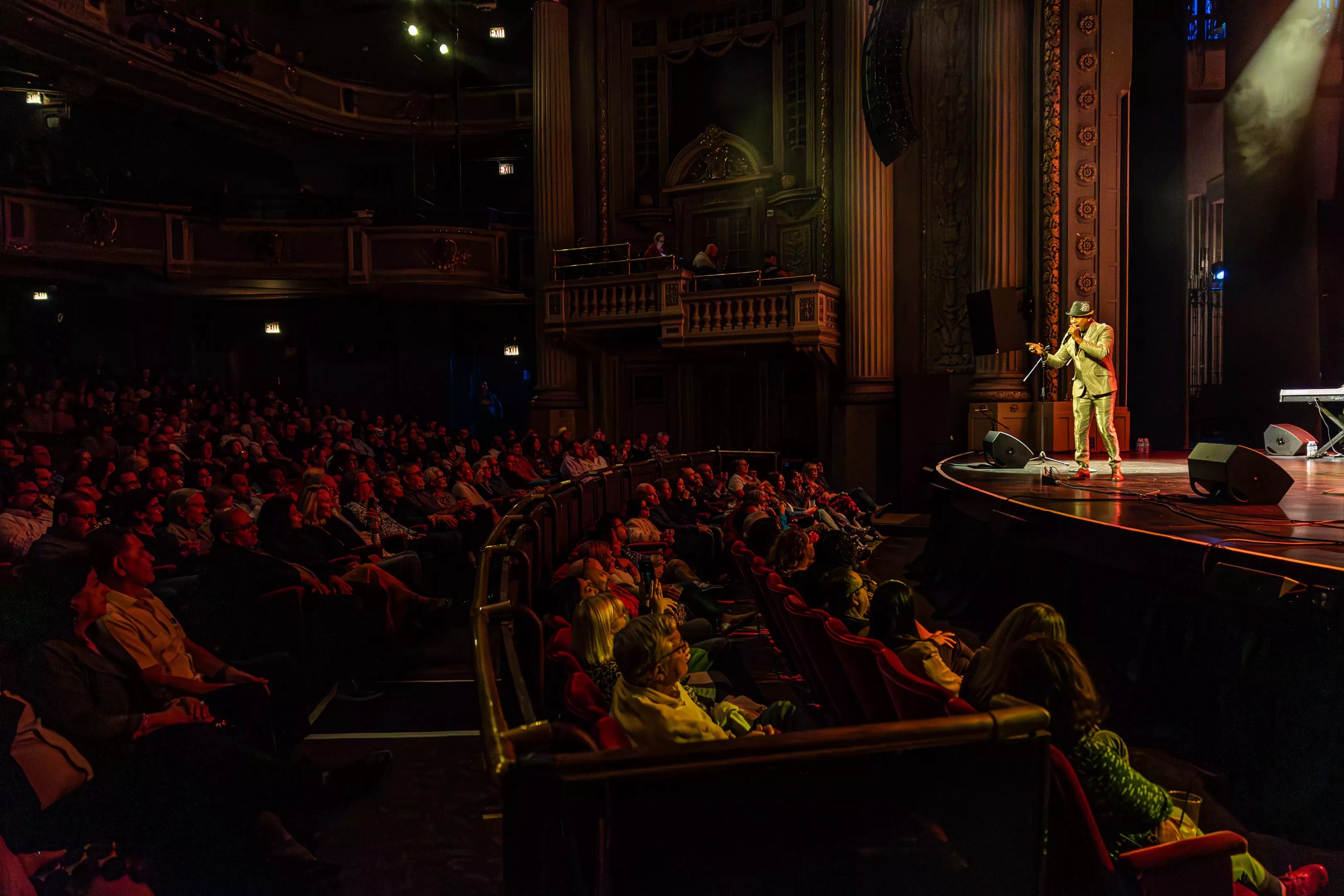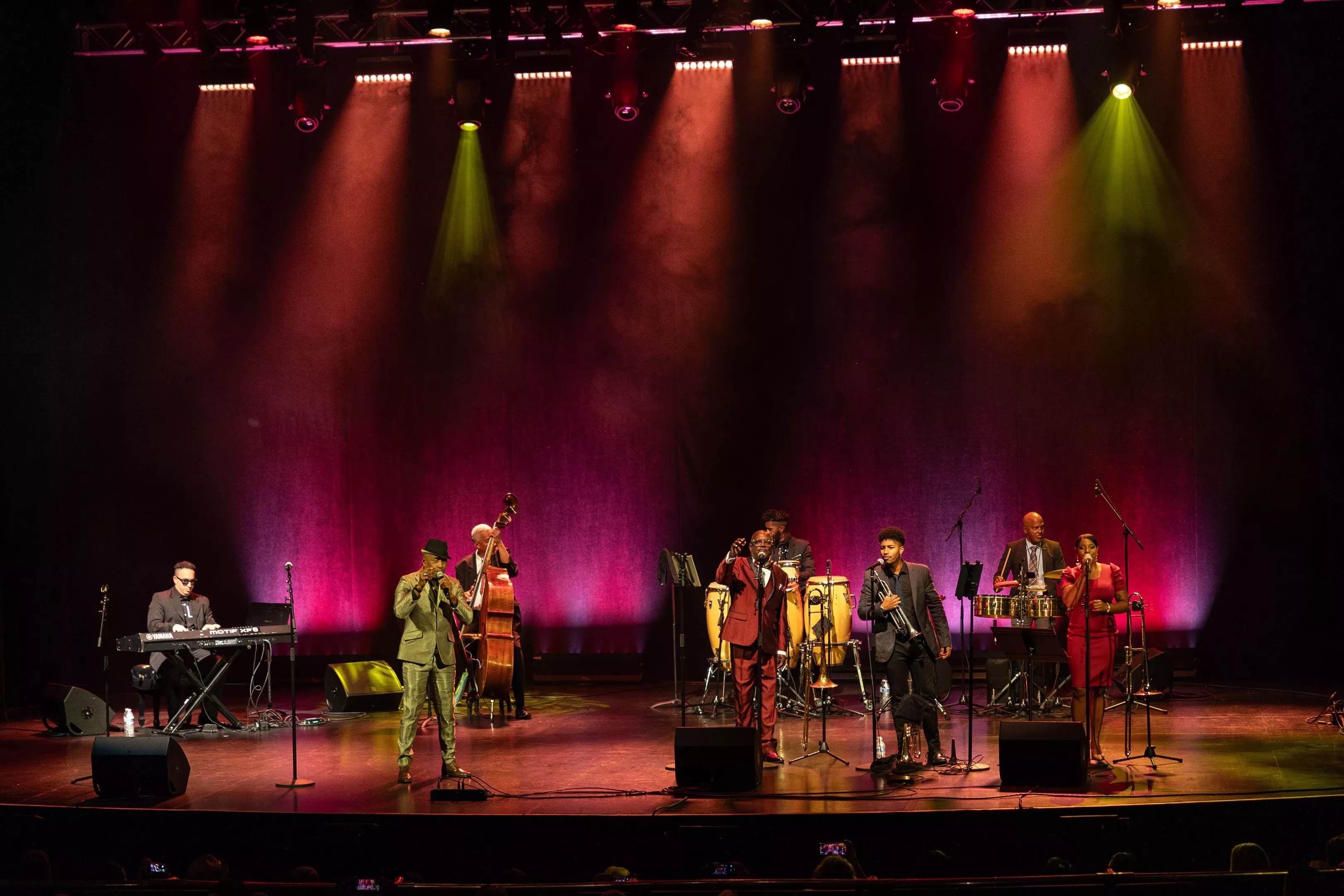 For roughly 100 minutes, the BVSO, standing on a stage holding only instruments and microphones, deployed a mix of instrumentals, standards and originals – all in Spanish; trace amounts of English were heard from the stage Thursday – to steadily pry audience members loose from their plush seats. As the night built to its climax, more and more individuals, particularly along the left side of the theater, began dancing in the aisle, swaying to the beat, lost in the bliss of undulating rhythms.