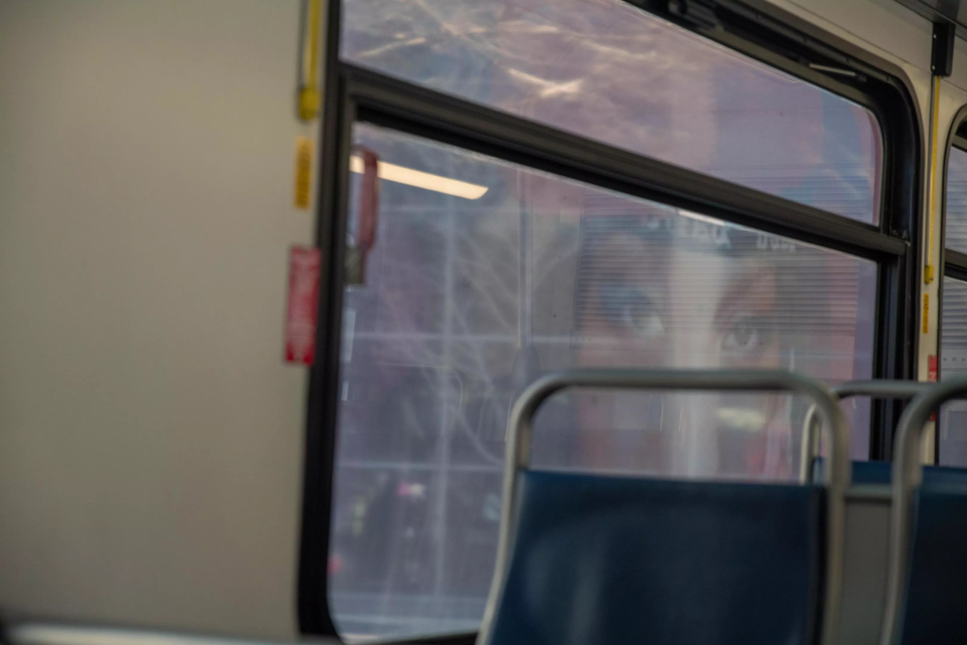 The real Erykah Badu shares a seat with the bus sticker Erykah Badu.