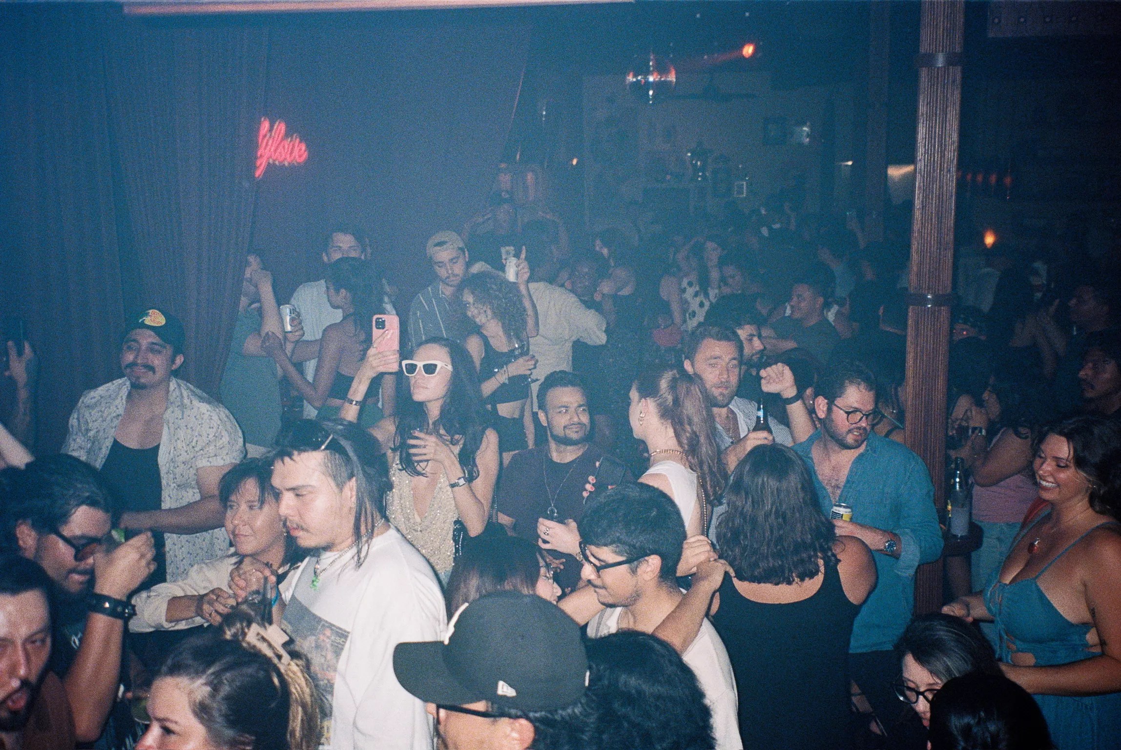 In the reading nook, DJs El Nick DGO and Ynfynt Scroll (Nick Ramirez and Rodrigo Diaz, respectively) stood behind the sound system, curating all-night b2b sets of a unique brand of Latin club fusion and creating a singular vibe to behold.